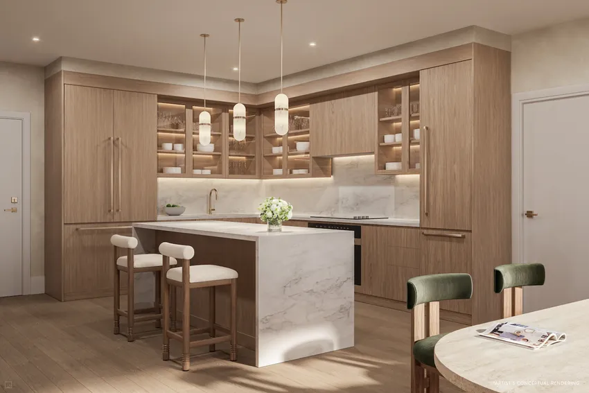 Todas las residencias cuentan con amplias distribuciones, ventanales de piso a techo, terrazas panorámicas con vistas a la ciudad, los canales y el océano. Se han utilizado materiales de alta gama, como mobiliario de cocina italiano, electrodomésticos Miele integrados, refrigeradores para vinos y baños tipo spa con duchas y bañeras separadas. Además, incluyen un sistema de "hogar inteligente" con acceso digital seguro.