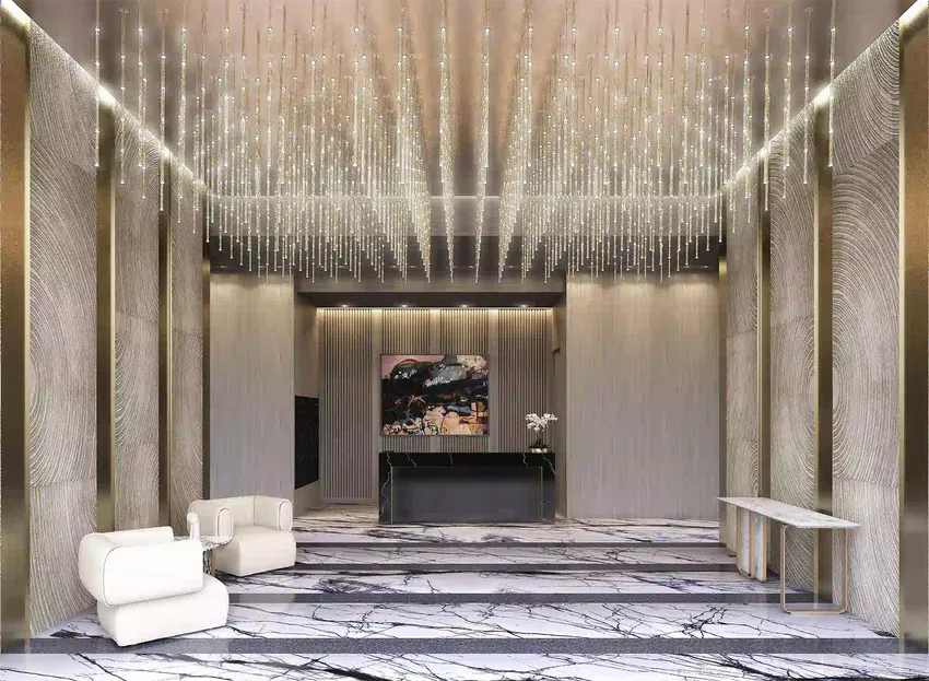 • Lobby elegante con techos de 15 pies de altura