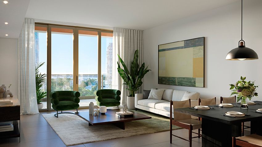 - Glass railings on terraces and impact-resistant floor-to-ceiling windows increase natural light