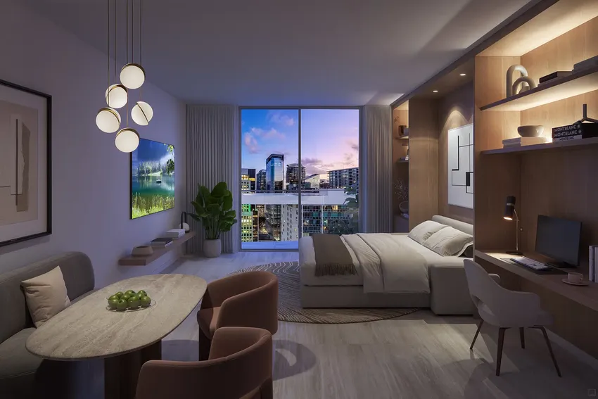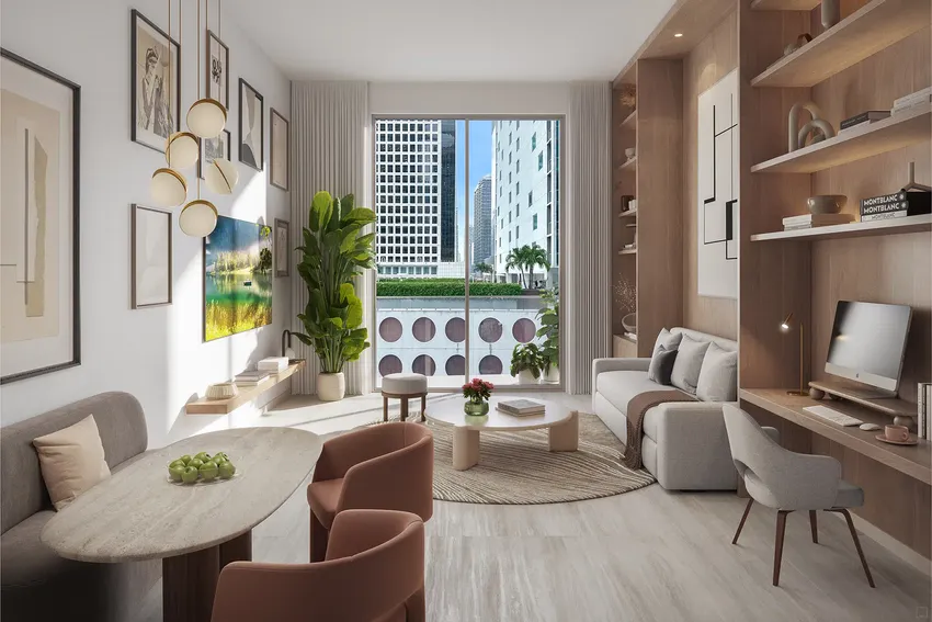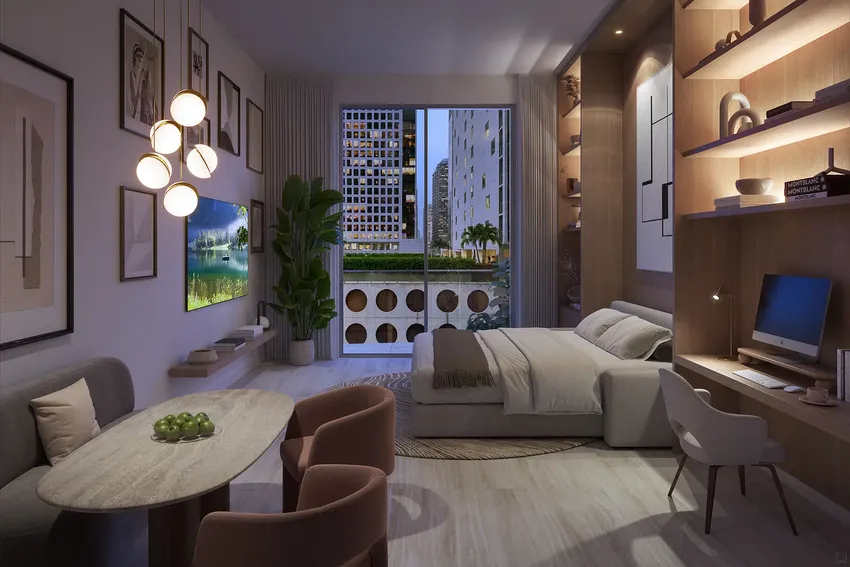 Viceroy Brickell Residences ofrece una variedad de opciones de vivienda, desde estudios prácticos hasta amplias residencias de uno o dos dormitorios, cada una diseñada para maximizar la comodidad de sus habitantes.