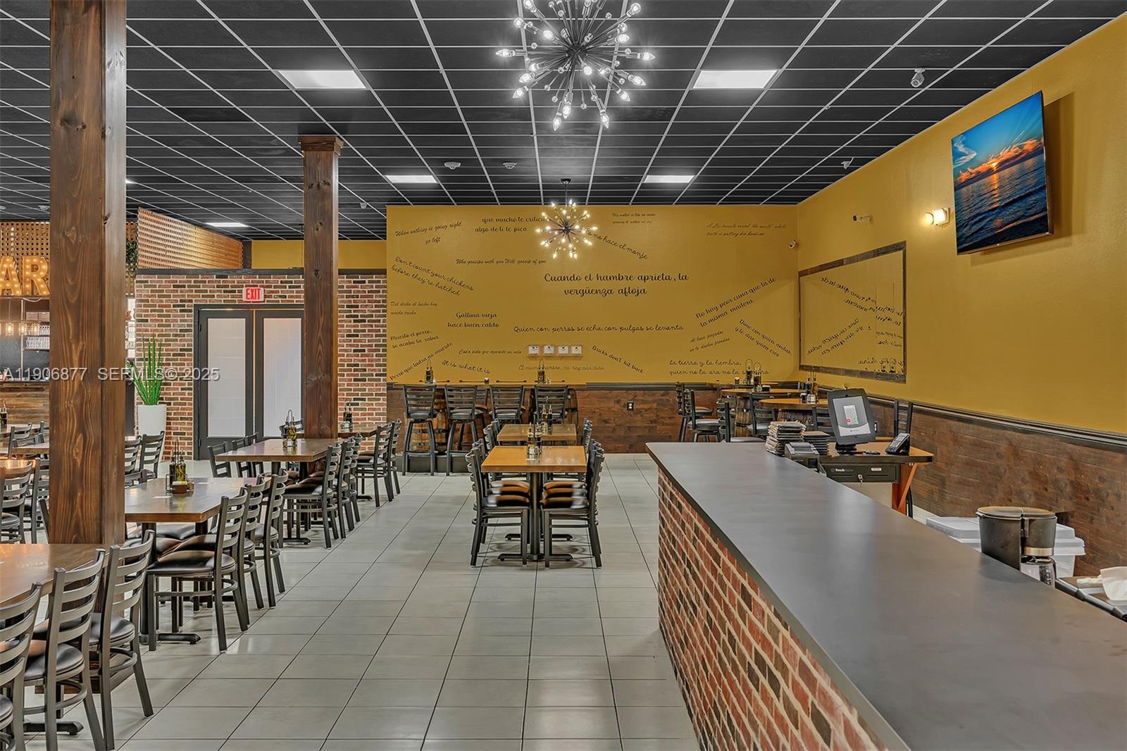 Multi-Use– Restaurant, Bakery, Event, Live music Venue, Custom BBQ area. Ready to go ! Brand new restaurant. Over 6,500 SqFt features a large, commercial-grade kitchen, multiple freezers, walk-in cool rooms, and ample storage space. A spacious event yard provide versatility for hosting private events, live performances, and community gatherings. Strategically located near South US1, easy access to shopping malls, South Dade Community College, City Hall, local theater. This property comes with both restaurant and liquor licenses, affordable monthly rent, making it an ideal investment. The property offers a unique fusion concept that can cater to various customer bases, from everyday diners to event-goers, live music enthusiasts, and banquet clients.