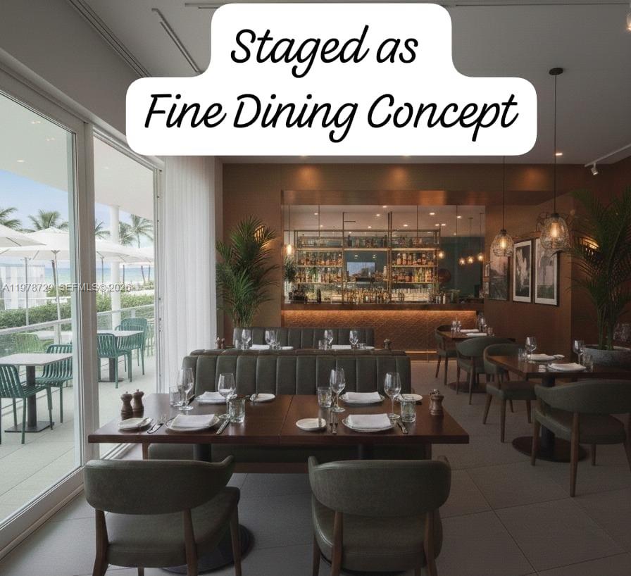 Unique opportunity to own a restaurant with the real estate in a prime beachfront location in the Alexander Towers in Hollywood Beach, located NEXT to the renowned Diplomat Beach Resort. This fully equipped restaurant with a full commercial kitchen is ready to operate immediately, offering a rare chance for an owner-operator or investor to step into a turnkey beachside restaurant. The space offers approximately 2,000 SQFT total, including 1,300 SQFT of interior dining and kitchen area, 600 SQFT of outdoor seating facing the pool, and 100 SQFT allocated for bathrooms and storage. The restaurant is located on the ground floor of a residential building with 270 units, providing a built-in customer base in addition to the steady flow of beach visitors and local tourists. The fully built-out commercial kitchen includes a 10-foot hood and grease trap, making it suitable for a wide range of culinary concepts. The City of Hollywood is known for being easy to work with, allowing a new owner to reopen quickly—potentially the very next day. With its beachfront setting, strong local and tourist traffic, and the rare advantage of owning the real estate along with the restaurant, this is an exceptional investment opportunity in one of South Florida’s most desirable coastal destinations.