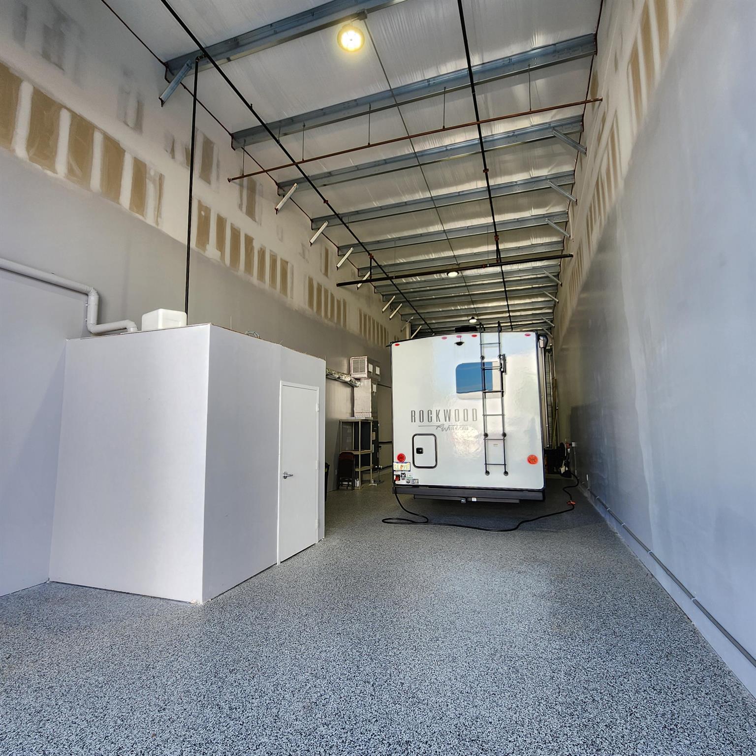 This 1,307 SF AutoVault is perfect for RV storage, car collections, or a business warehouse! Featuring A/C, two 16' automatic doors, polyaspartic flooring, three-phase power, and 24' ceilings, it offers endless possibilities. Store & protect your classic cars, RVs, motorcycles, or boats in a secure, climate-controlled space. Transform it into a man cave, private gym, gaming lounge, or workshop. Use it for business as an auto detailing shop, e-commerce fulfillment center, showroom, or photography studio. Generate income by renting it as luxury vehicle storage or a private workspace. This versatile space blends functionality with style, making it an exceptional investment for personal or commercial use.