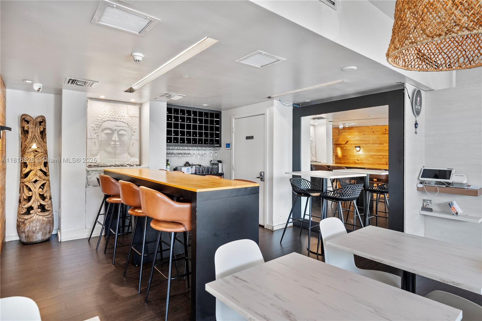 This prime 850 sq. ft. unit presents a rare business and investment opportunity in the heart of Brickell. Located on the first floor, the space offers tranquil water views upon exit and is currently leased to a restaurant tenant through December 2025, providing immediate rental income.