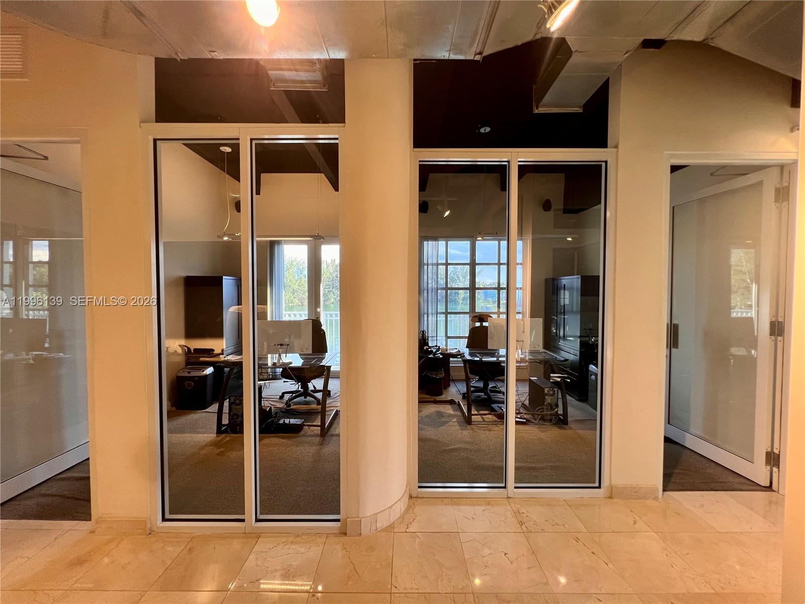 Welcome to Kendall-Tamiami's Premier Penthouse Office space. Located on the main artery connector to 874 Don Shula, Turnpike & Miami Executive Airport. Original owner with no expense spared in design and layout. This Office space presents itself as the nicest in the entire complex with regards to placement, views and layout. As you arrive to your office, access your entrance via staircase or Elevator. The walkway towards the Office is open and welcomes a beautiful lake view. As you enter your spacious marble floor adorned waiting area, you will notice a reception window and secured privacy entry way. Once inside you will notice freshly polished Crema Marfil Marble floors, a long hallway leading to 6 glass enclosed office spaces plus a large conference room w/ balcony & open lake views purposely designed such that every office space provides stunning lake and sunset views. Loft style volume ceilings soaring 11-17’ high throughout. Custom Bruck & Sistemalux lighting throughout. Kitchen area w/ sink & refrigerator. The large 2.2k sqft space features a full Marble bathroom w/ custom glass enclosed Grohe massage jetted shower and a second marble floor to ceiling half bathroom. Security, lights, HVAC & High end sound system throughout all controlled by a Smart Crestron Automation system. Hurricane impact windows and doors. Prime picked 7 deeded parking spaces (2 Covered). Brand new Roof in 2024. HOA completely renovated complex ($750k). Assessment fully paid. Priced to sell fast.