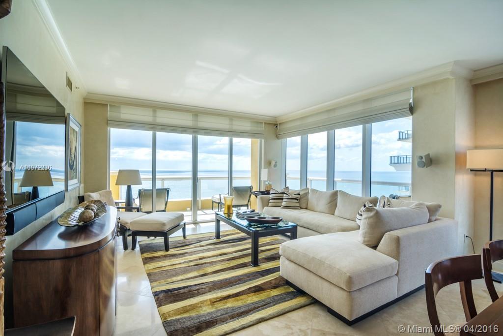 THE PRIVATE BEACH IS THIS WAY > ACQUALINA OCEAN RESIDENCES & RESORT !! Luxury & Service wherever you look! OWN YOUR RESIDENCE HERE! This fabulous turnkey high floor apartment is the only true 4bed/4 bath S/E corner for sale in the building. The luxury Tower "The Mansions of Acqualina" (same Developer) is your neighbor on the S/E side. So never any construction disturbance. Ocean, Downtown Miami over the Intracoastal Waterways views are forever. Enjoy the presented photos.