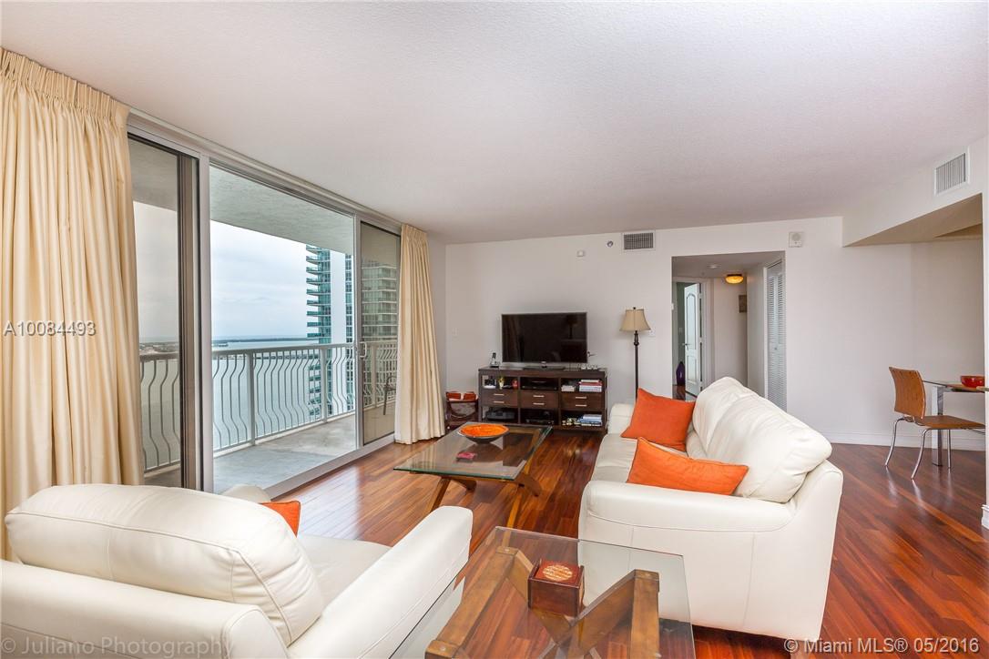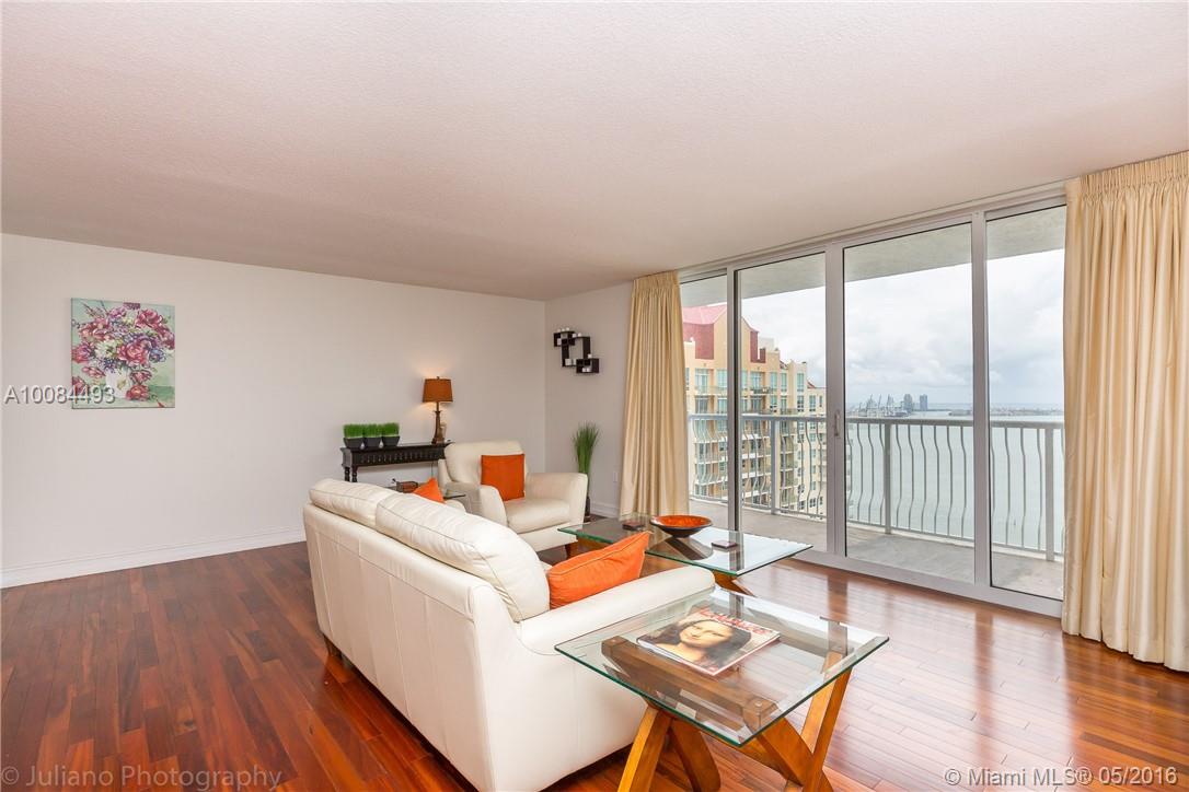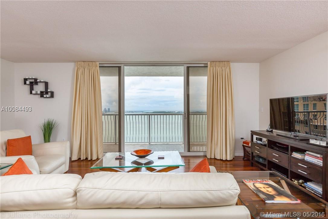 BEAUTIFUL 2 bedroom 2 bath unit with INTERCOSTAL and OCEAN views. The unit is being sold with furniture. This property is perfect for seasonal rentals. Walking distance from Mary Brickell Shops, Trulucks, Crazy about You, Komoto, and other fantastic restaurants in the area. Easy access to the express way, as well. The unit is in excellent conditions and has beautiful dark wood floors throughout. Priced to sell! Do not hesitate, this unit will sell quickly!