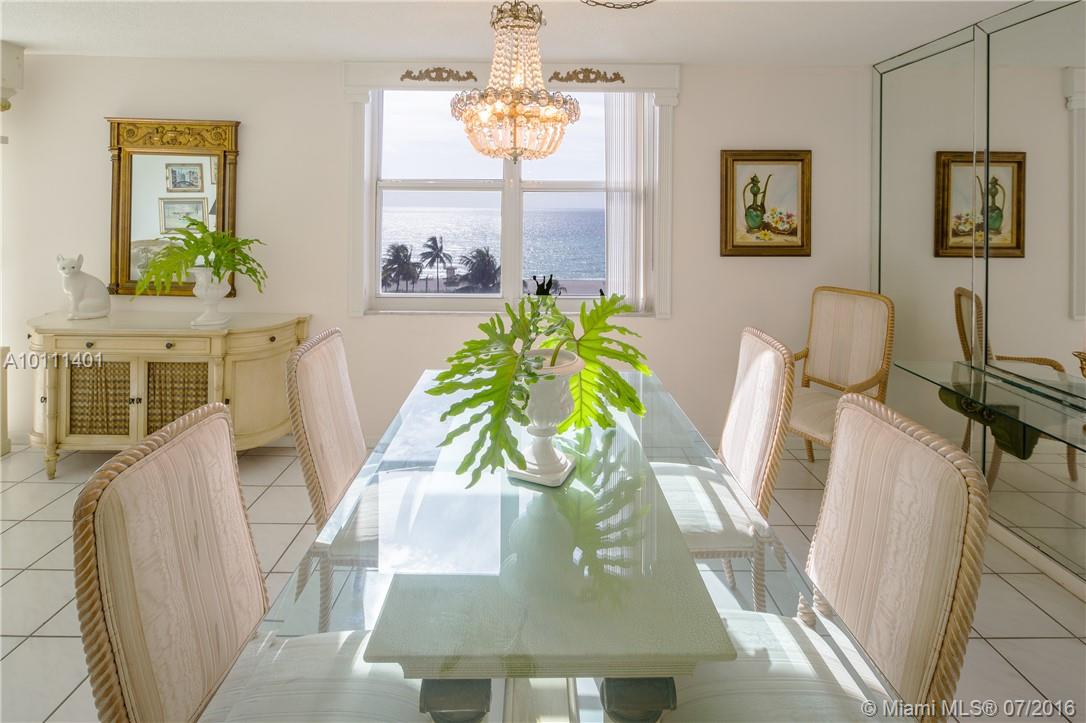 Breathtaking 180 degree panoramic direct full view of the ocean and Intra coastal This 8th floor corner unit features a large living room, eat-in kitchen, large master bedroom and bath, impact doors and windows. This spectacular boutique building has undergone the 40 year restoration including newly painted building, landscaping, parking asphalt entry doors and glass balconies. Steps to the beach and a short walk to the Hollywood Broadwalk.