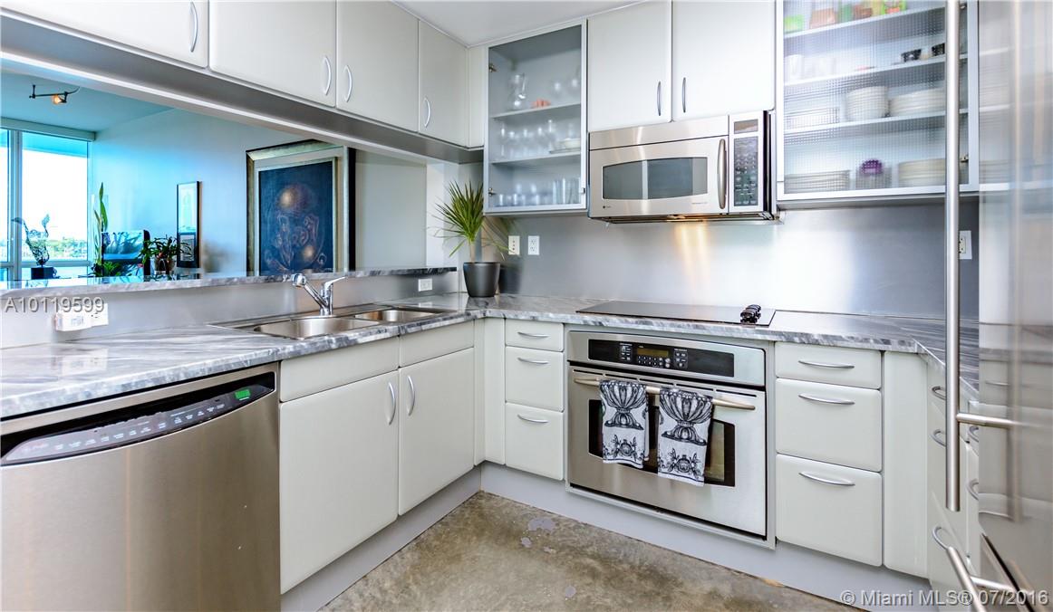 Enjoy mesmerizing views of Biscayne Bay & the Miami Skyline that showcases spectacular Sunsets from this exceptional Bentley Bay 1 br/1 bath bay front unit. Features include: 776 sq.ft. interior, corner unit, light and airy, European kitchen cabinetry, marble countertops, stainless steel backsplash, polished concrete flooring throughout, bathroom contains Italian marble, separate tub & shower, walk-in closet, 9 foot ceilings & 1 valet parking space. Easy to show. Live the Miami Beach lifestyle in this fantastic unit!