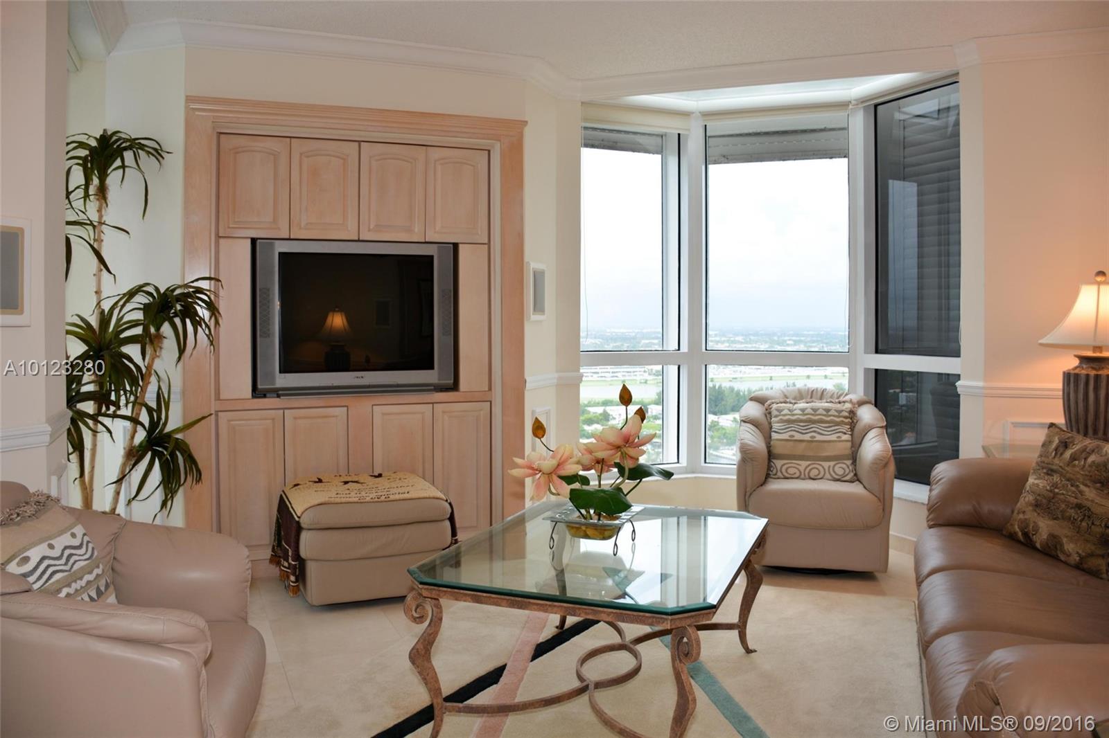 BEST DEAL! Spectacular Penthouse corner unit w/BREATHTAKING views from 2 balconies. 2 covered parking spaces in garage close to the elevator. 3 BR 2 BA, 3rd BR currently used as a family room, this unit features split floor plan, marble floors , eat-in kitchen, formal dining room, spacious master suite w/2 walk-in closets, 1 of them currently used as an office, also has a large master bath w/bidet, double sink, tub & glass shower. Great amenities, 24 hr. security. Small pets allowed, Ok to rent.