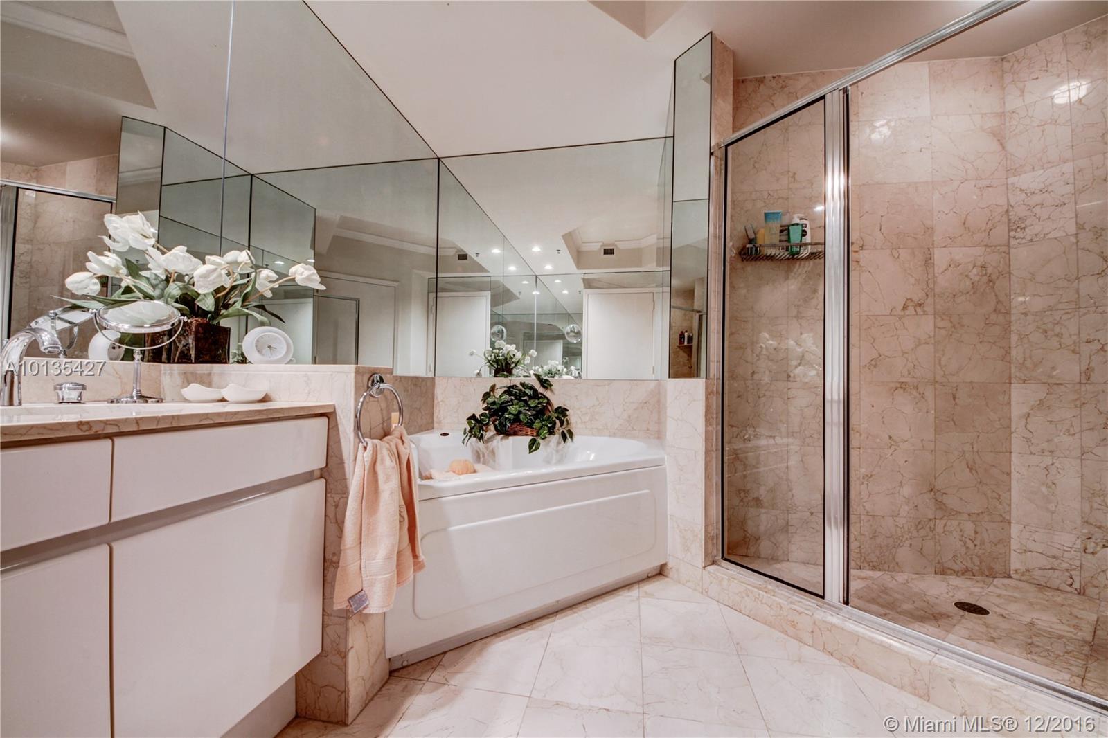 PRICED TO SELL - Beautifully kept 1540 sq/ft 2/2/1 unit w/ rare 2 ASSIGNED parking, 1 ASSINGED storage (10K value), a giant balcony w/ stunning bay/city views & access from both bedrooms. 24x24 Marble floors in living/dining/kitchen/balcony, an eat-in area within kitchen, huge walk-in California closets, an upgraded 1/2 bath w/ a second sink, a master bath w/ double vanity, Jacuzzi tub, and shower, a built-out office desk in the master. Two Tequesta is one of the most luxurious buildings on Brickell Key.