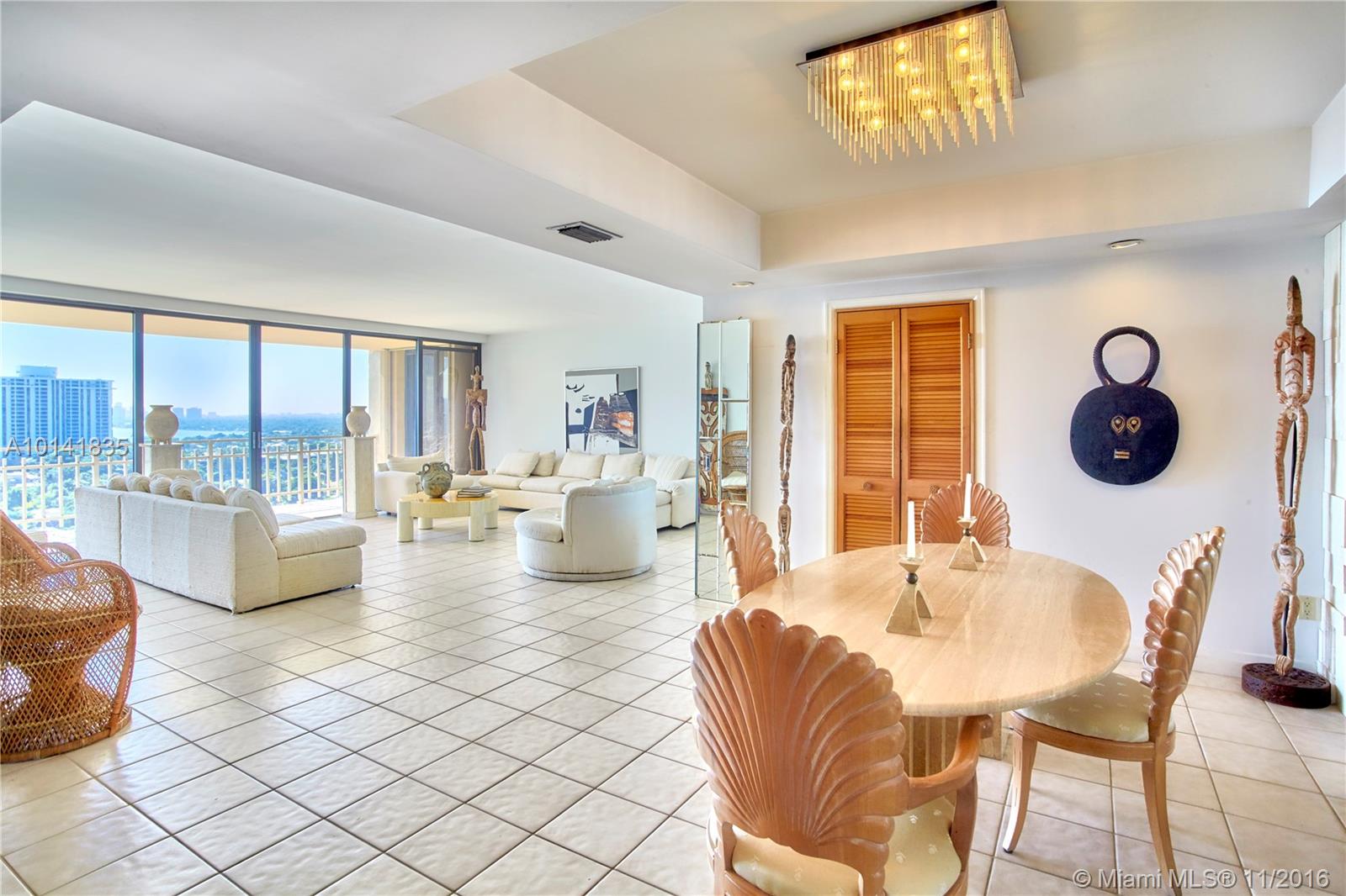 Direct Panoramic Views of Biscayne Bay from every room, this high floor 2/2 unit is on one of the most desirable lines. Double door entry, tile and carpet floors, original kitchen w/wood cabinets, laundry room in the unit, covered parking, storage space & storm shutters. Over 1800 SF 2br/2bath split plan, master suite w/ huge walk-in closet. Amenities: security, exercise room w/ steam & sauna, tennis & heated pool, children's parking, complimentary valet service, gated waterfront community on 23 acres.