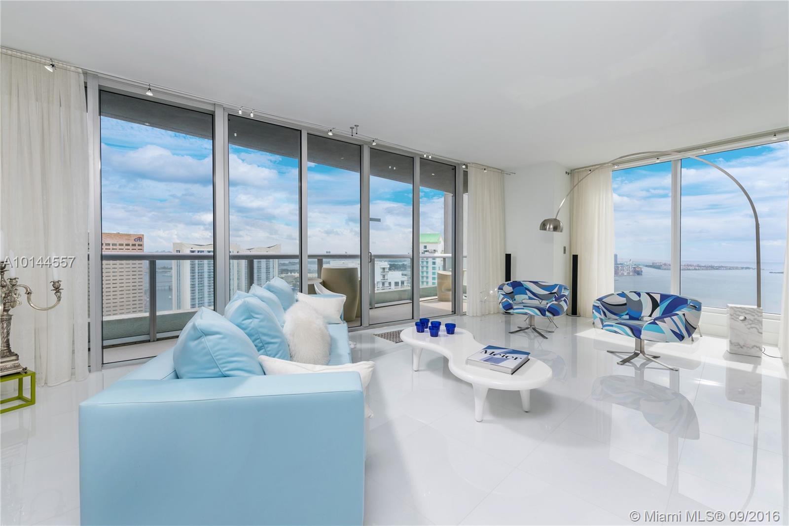 This stunning corner unit has been completely renovated with top of the line finishes including white glass flooring, redesigned bathrooms, and beautiful marble counters. The second bedroom was opened to take advantage of the spectacular direct water views. The unit comes completely furnished with European designer furniture including Pucci & Ligne Rosset seating. Also features a Bang & Olufsen sound system, led televisions, and brand new washer/dryer.This is a must see, best floorplan in Icon Brickell!