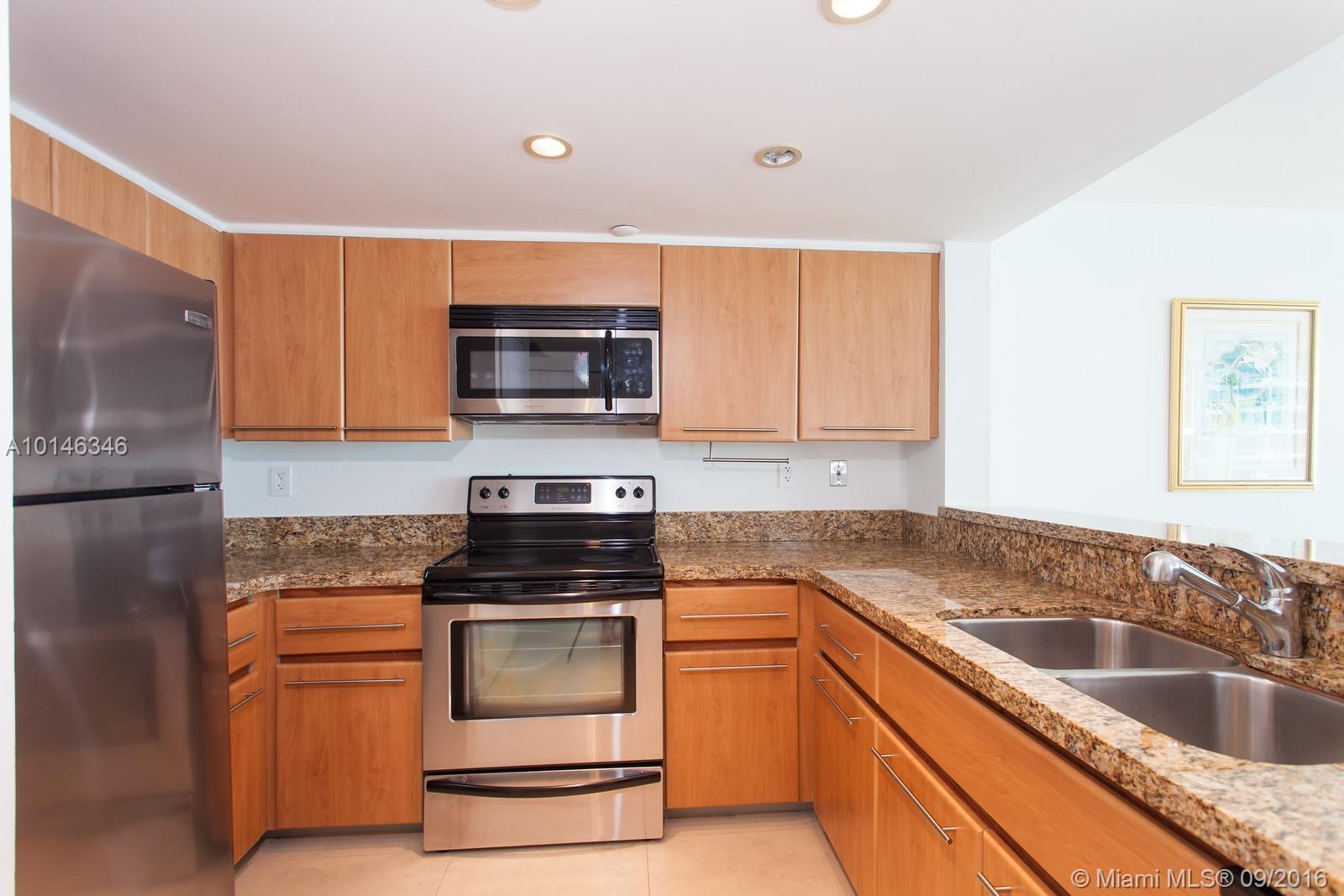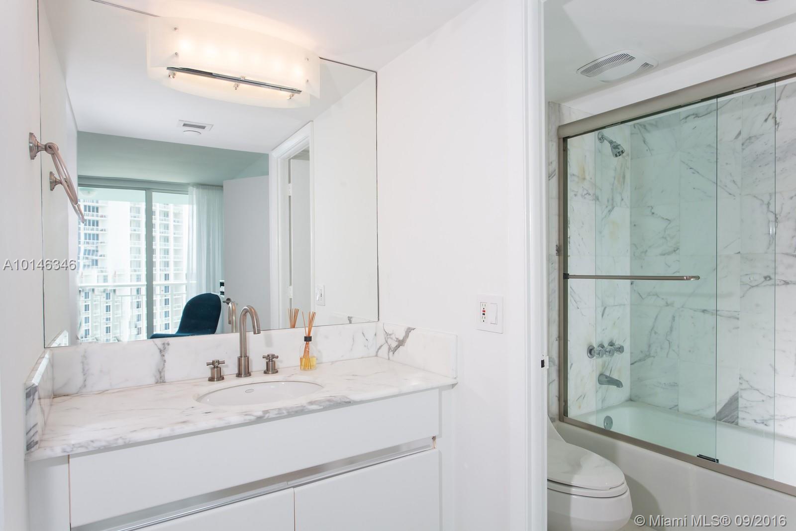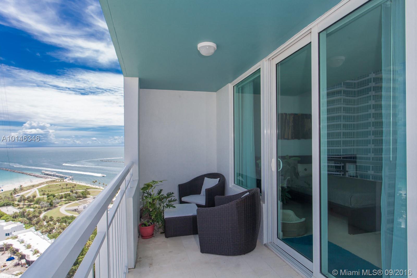 Originally 2 BR, 2BA, unit has been completely renovated to huge 1 bedroom + 2 bath. Can easily be put back to original layout. Limestone floors throughout, new kitchen and bath. New impact windows throughout. Unit is one of few in the 06 line with extended balcony and privacy wall (only on 22nd and 23rd floor of building). High floor views of Ocean, South Beach and Govt Cut. Price to sell. Easy to show.