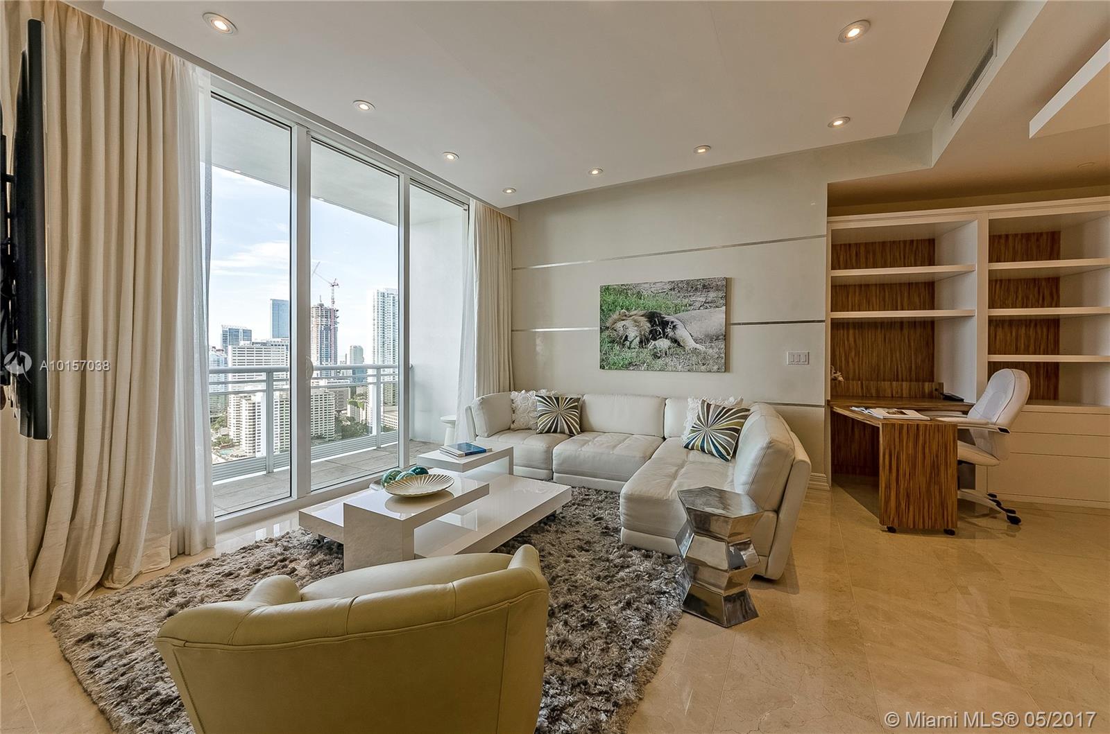 Gorgeous, upgraded & super large 1bed/1.5ba, 1,031sf unit w 10' ceilings & designer decorated offered fully furnished,turn-key in the extremely secure, upscale Carbonell on gated Brickell Key Island! Water & city views. This unit features custom lighting & finishes, huge walk-in closet,spacious master bathrm w/ Jacuzzi tub. Smart Home featrs w/ Crestron system- allows control of everything from lighting to music in your home.1-assign parking, friendly, free valet for guests.Luxurious amenities!