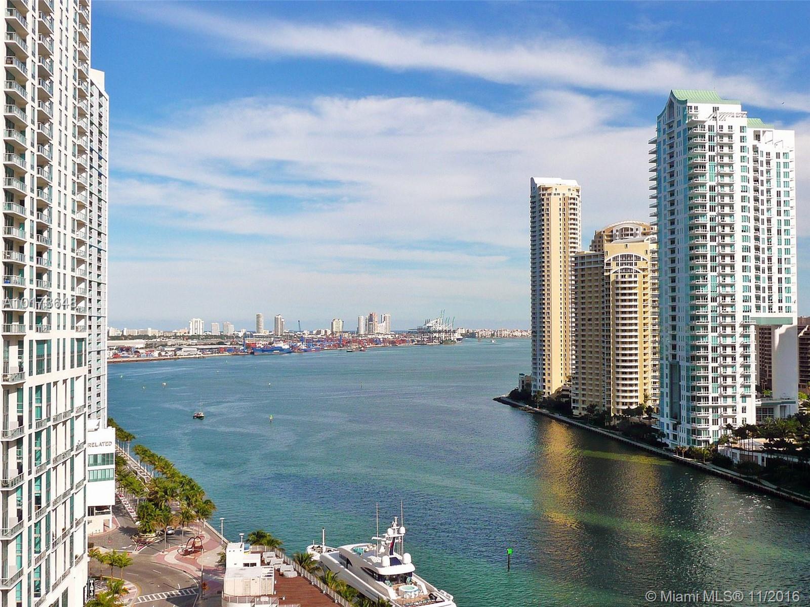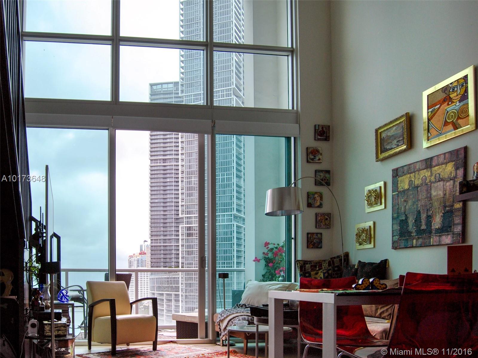 Investment opportunity: best priced waterfront loft in Met 1 Miami. Sophisticated two story loft, 20' ceilings and floor-to-ceiling windows. Enjoy dramatic waterfront views of Miami and the ocean. This one bedroom /1.5 bathroom condo is located in the heart of Downtown Miami. Unit features granite countertops, stainless steel appliances and brand new washer/dryer. 24 hour full service building with a full suite of amenities including a pool, fitness center, yoga room and spa.