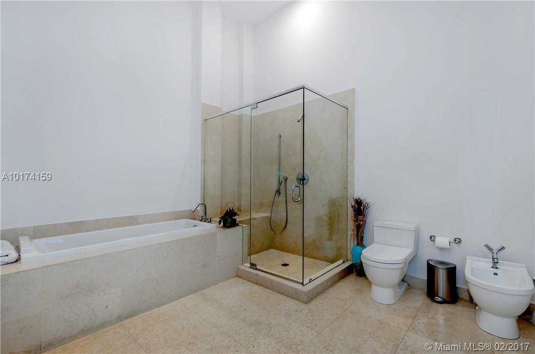 Spectacular 2/2 split unit w/breathtaking ocean, river & city views with 16ft high ceiling windows (Only floors 14, 15, 22, and 41 have high ceilings windows). Modern and sleek 24x24 white porcelain floors. Luxurious marble baths w/ over-sized Jacuzzi tub. Walk-in closets custom lined with wood. Extended travertine counter top, LED lighting. Top of the line appliances. Resort style living with state of the art, gym, spa. Five star restaurant Cipriani. **Special Assessment paid in full by owner*
