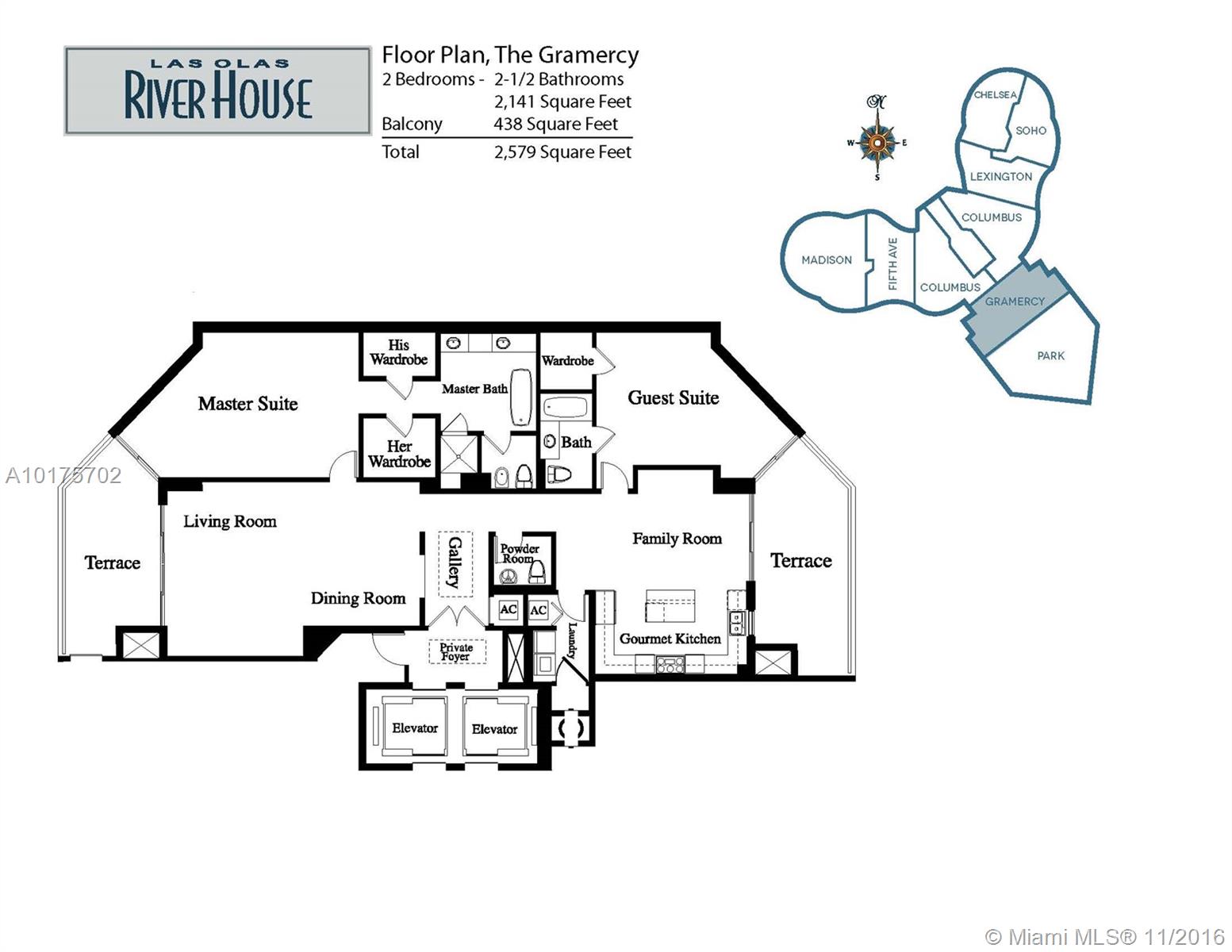 This elegantly decorated Gramercy Model offers waterfront living with breathtaking views of the New River, Ft. Lauderdale's skyline and ocean. The private elevator entrance will escort you onto this open-concept, light-filled gem. With a unique flow-through, split floor plan you will enjoy East and West terraces on the 28th floor! Unit carries beautiful baths and Snaidero kitchen. Live in absolute luxury; the resort-style building decorated by Steven G offers world-class amenities, steps from Las Olas