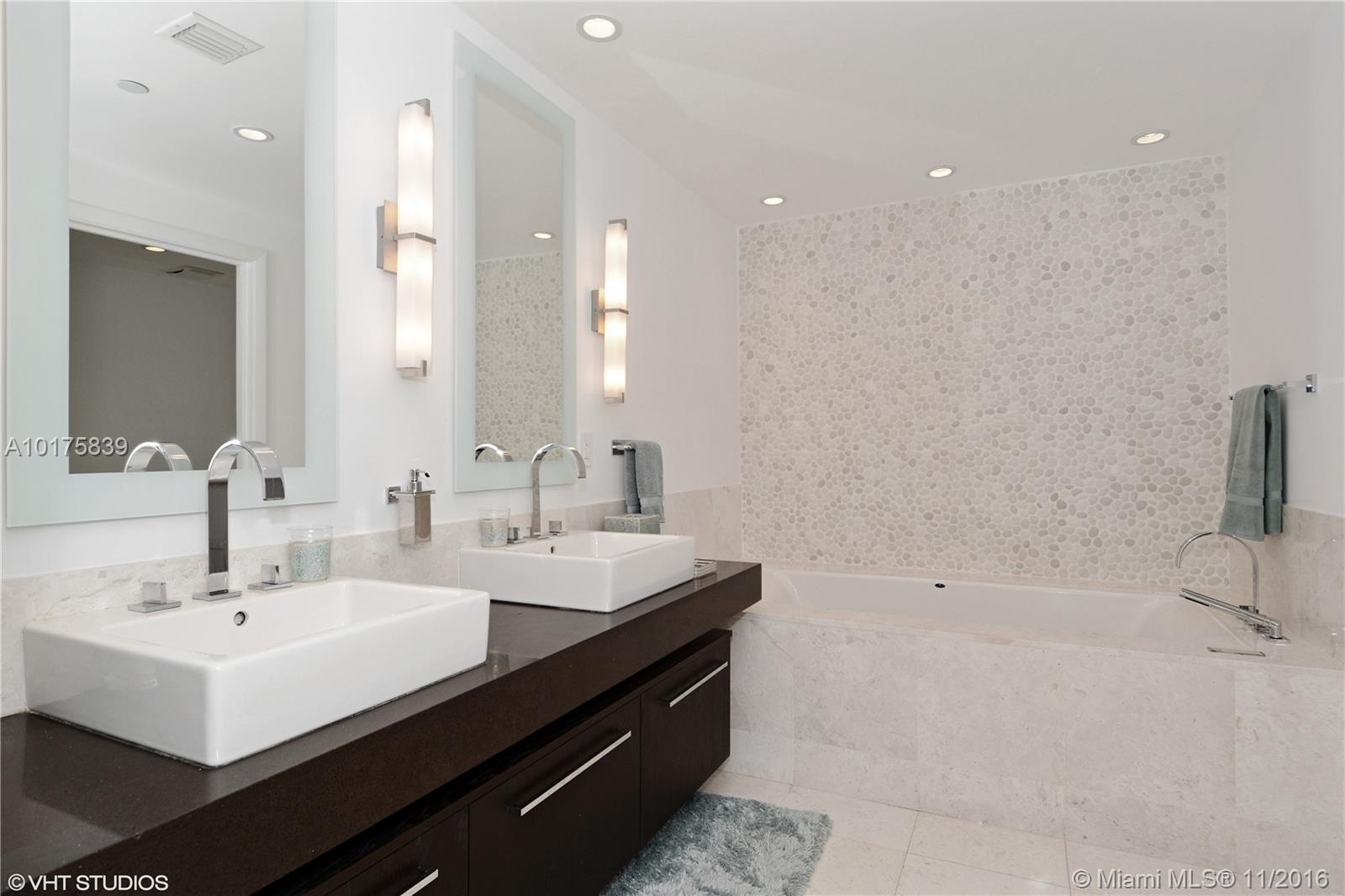 PRICE TO SELL.. Turn key impeccably decorated and furnished.OVER $200,00O IN IMPROVEMENTS. Open Living and dining areas, fine statuario marble floors throughout, private foyer with wood panels and exclusive wall paper, drop ceilings in living area with Lutron automation system. A unique stone wall in the living area, electric window treatments and security features in different areas.Enjoy open ocean and intracoastal views from this flow through residence. Chef's kitchen w/top of the line Appliances(Miele- Subzero)offering Snadeiro Custom cabinetry with quartz center island with eat-in breakfast seating.A sumptuous master suite offers stunning ocean views with floor to ceiling windows and Powder room features exquisite designer finishes.