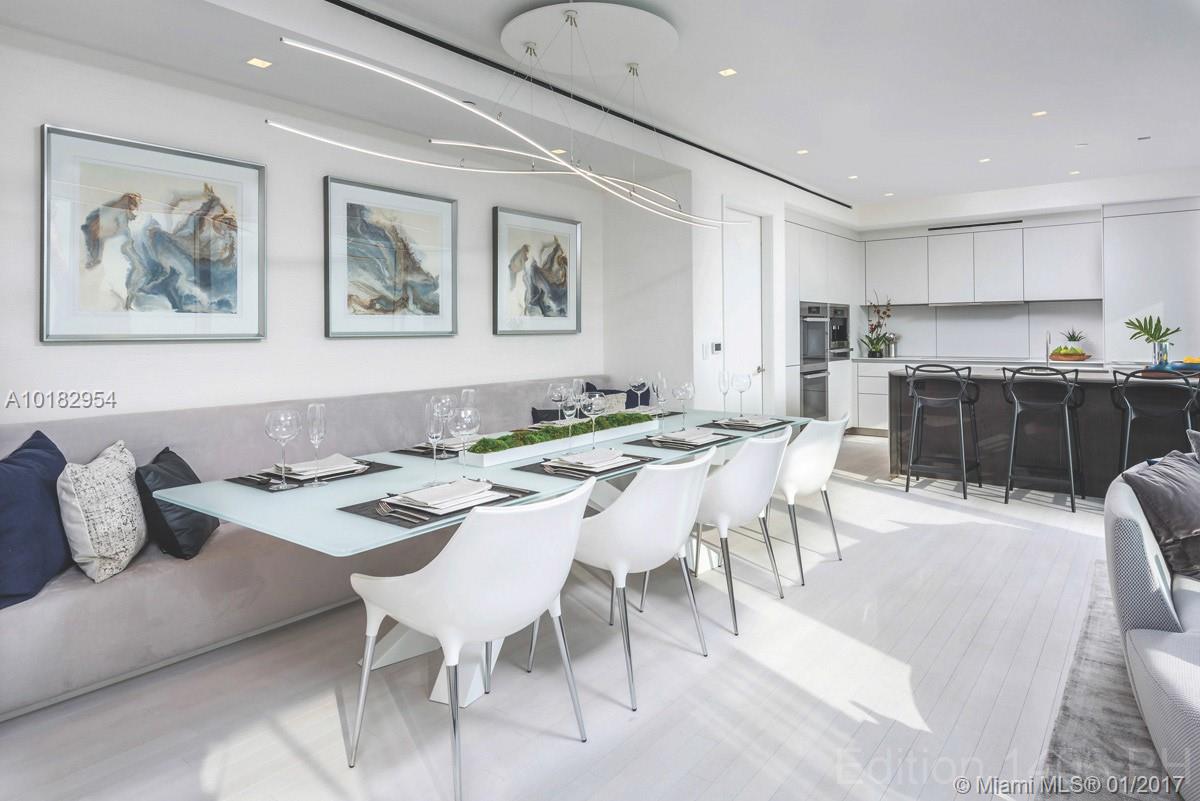 This exclusive waterfront penthouse features two-stories of ocean and bay views from all rooms through full floor-to-ceiling glass. This south facing penthouse comes fully furnished with impeccable design that has whitewashed teak floors, custom European Bulthaup kitchen, electronic audio and video Smart Home features, a private rooftop deck with plunge pool and a covered outdoor kitchen. Enjoy all Edition Hotel services, from Jean George's Matador dining room to evening turn down service.