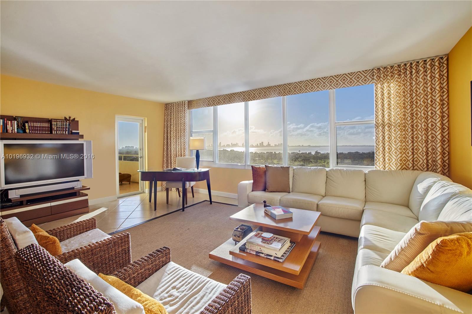 Elegantly appointed unit by famed designer Steven G in the heart of Millionaire's Row. This corner unit boasts THE BEST views in the entire building - sweeping views from each room of La Gorce golf course, the intracoastal & downtown Miami. With 1,750 SQFT of interior living space & a large balcony off the living room & master bedroom, this generously sized property is perfect as a full time residence or spectacular vacation home. Offered turn-key with updated kitchen & bathrooms, full service building.