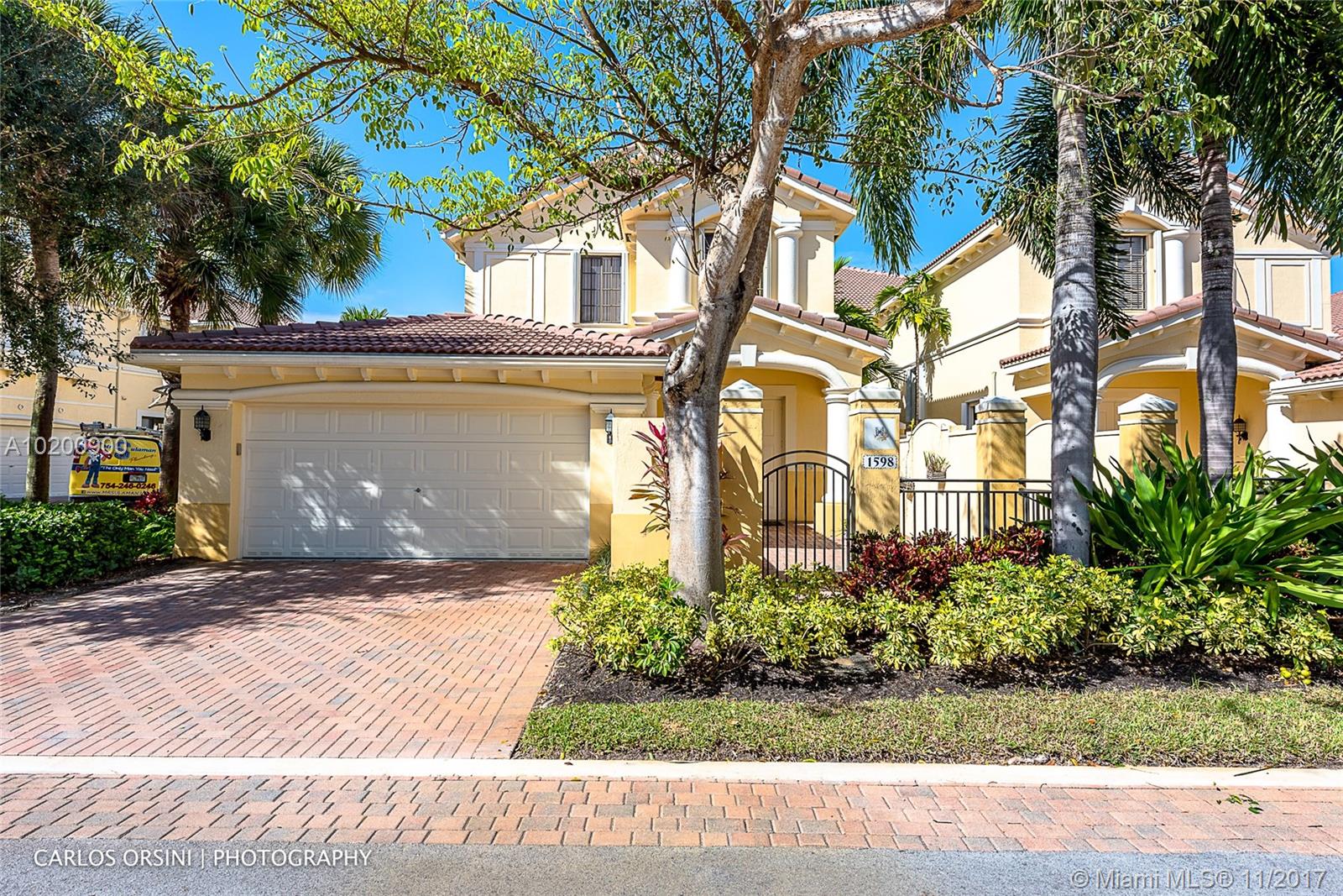 ENTER INTO A COURT YARD LEADING TO THE LGE FOYER WITH YOUR PERSONAL ELEVATOR THAT TAKES YOU TO THE SPACIOUSKIGHT AND BRIGHT LIVING QUARTERS. THIS IMMACULATE HOME FEATURES 3 BDR + DEN (can be easily converted into a 4th bdr) 2.5 BATHROOMS, LGE EAT IN KITCHEN W/UPGRADED APPLIANCES, FAMILY ROOM, FRML DINING & LIVING ROOMS. HANDICAP READY. THIS PROPERTY BOASTS 2 CG , ACCORDION SHUTTERS & SCREENED BALCONY. A MAINTENANCE FREE GATED COMMUNITY IN THE HEART OF WESTON. WALK TO SHOPS AND RESTAURANTS.