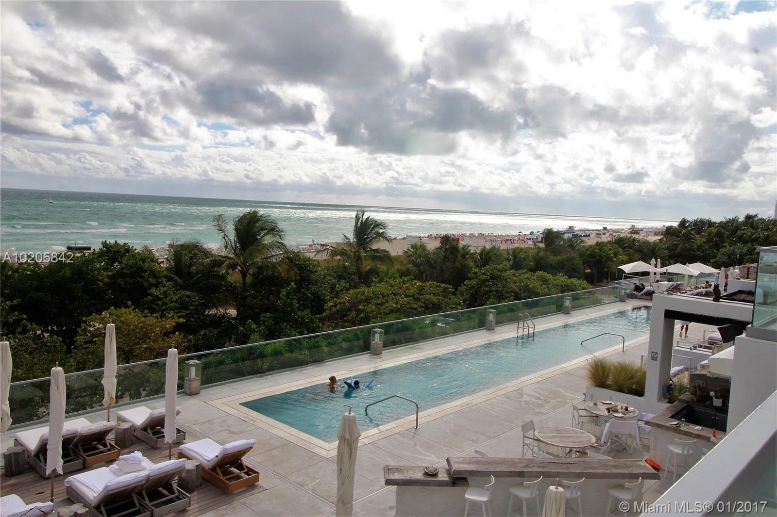 Direct ocean views from this large studio with balcony in a four star luxurious full service oceanfront building on 600 ft of beach in SOBE! Features include porcelain tile, large ktchn ample storage & furniture. Enjoy three pools, access to world class gym & spa,Beach Club, outstanding restaurants & bars, 24 hr valet & security. Ideal for investors with liberal rental restrictions. Steps from Lincoln Road. Live the dream enjoy the ultimate South Beach lifestyle in one of the trendiest buildings in Miami!