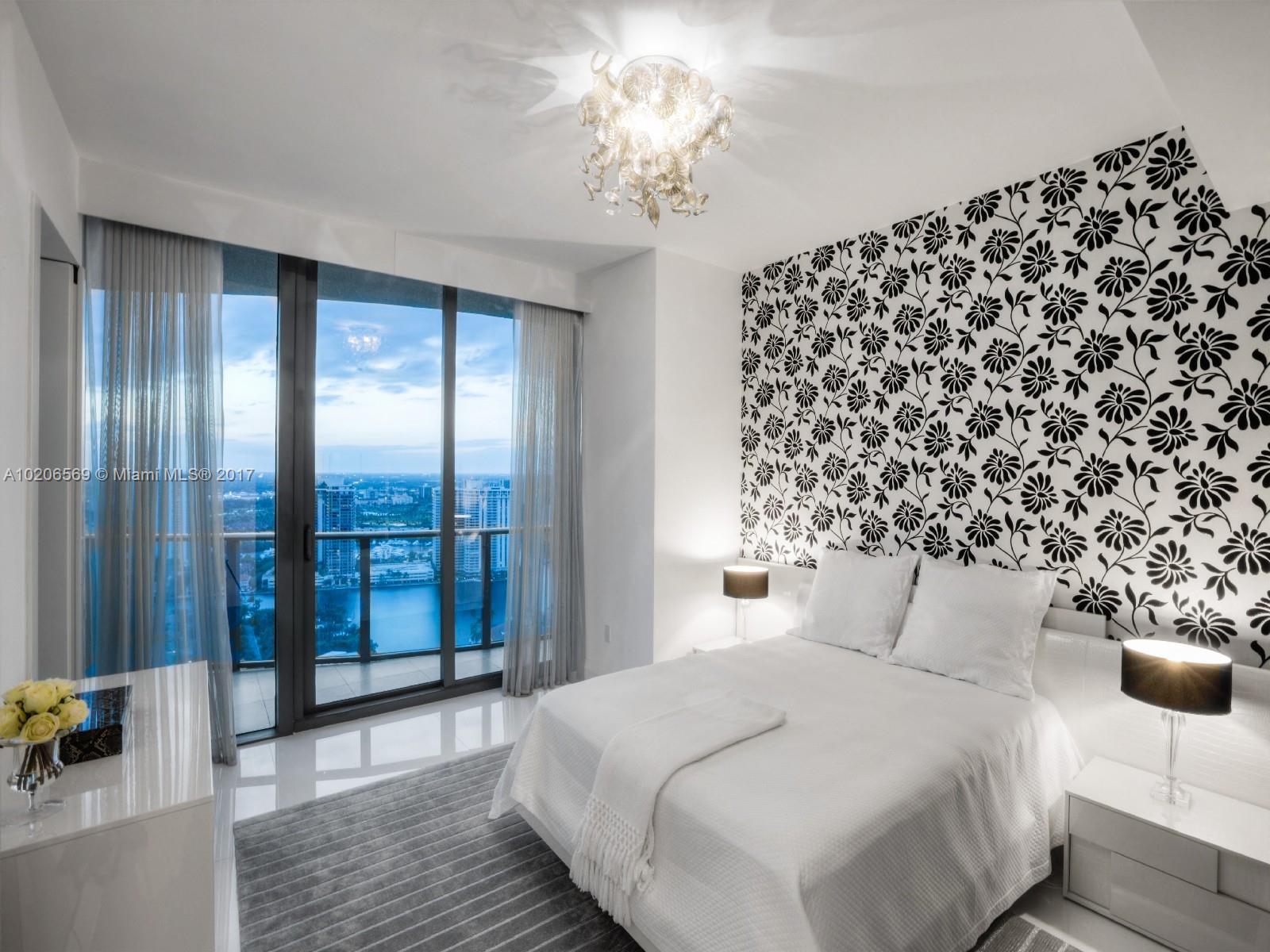 Highest furnished 4BD available for sale. Only One Residence per floor over 5,000 sq. ft of interior space- ready to move in - magnificent views with a full 360 degree of wrap around glass balconies 4 bedrooms plus family room and 5.5 bath. Neutral colors with white Italian custom made kitchen and extraordinary ambiance lighting with recessed and stacked soffits. Fully Upgraded Creston controls with sound and TV connections though-out.
