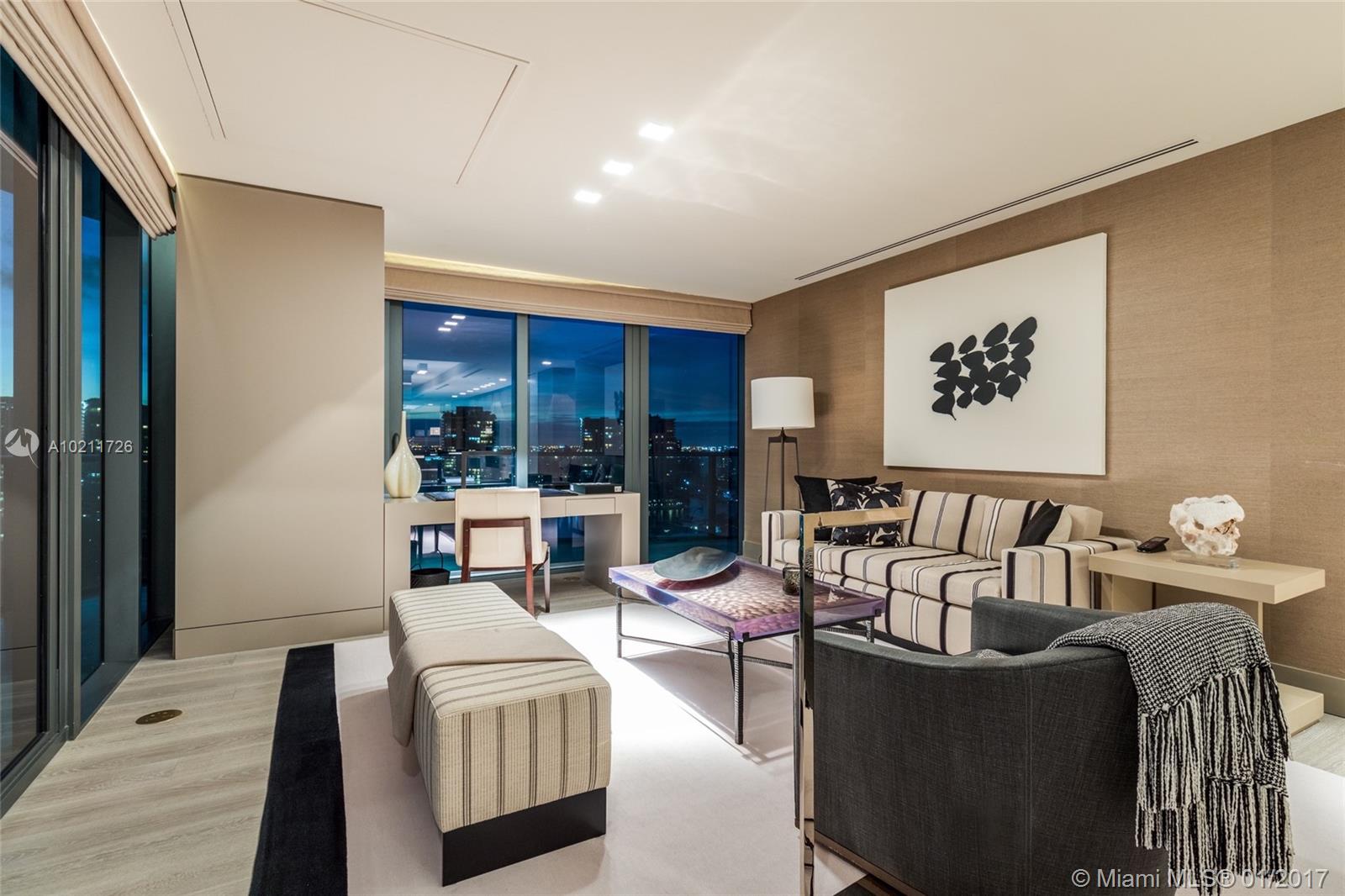 Move right in! Never lived in Charles Allem designed, fully furnished, turn key model residence. Enjoy 360 unobstructed views, private elevator, & floor to ceiling windows in this full floor, 4 Bedroom + maid quarters/ 5.5 Bathroom. Exclusive building with only 39 single floor residences. Lavish interiors with 7,600 SQ FT total, 5,515 SQ FT interior and 2,100 SQ FT wrap around terrace. Accessories and original art all included! Over 1.5 Million in interior finishes, you do not want to miss!