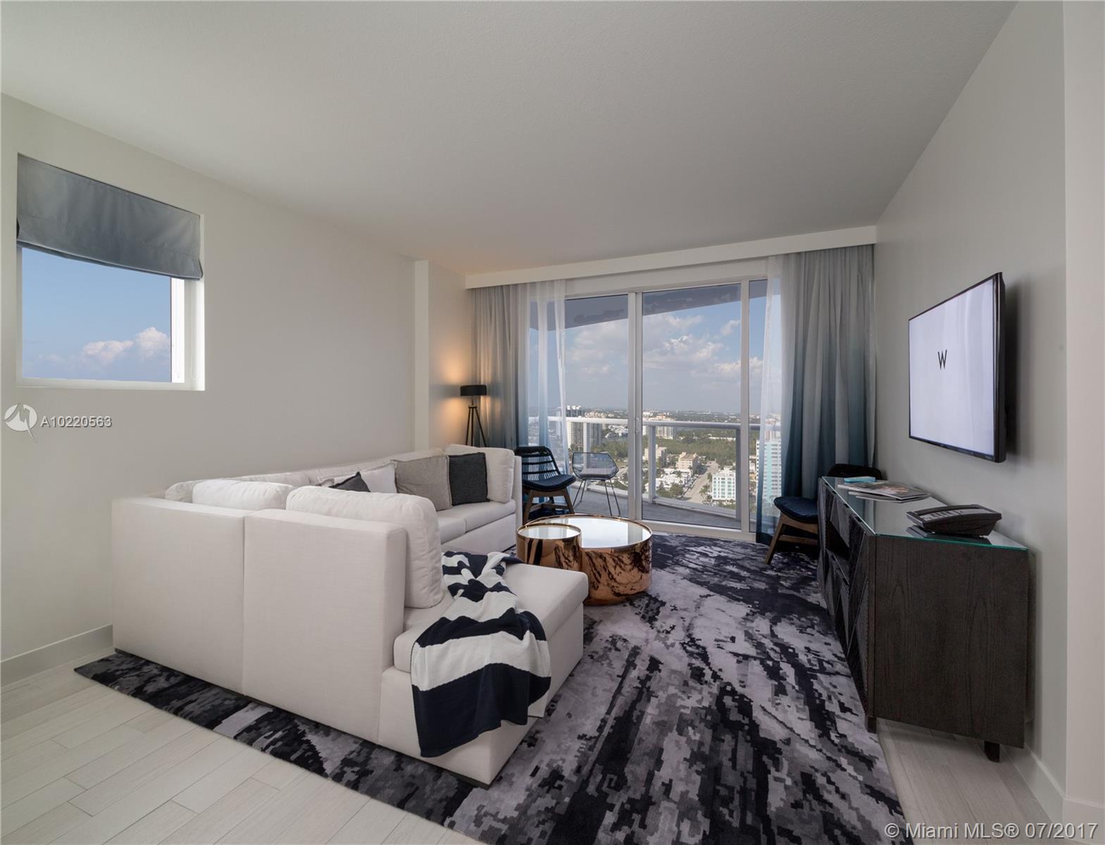 Fully furnished oceanfront residence designed by New York-based design duo Meyer Davis. 9-foot floor-to-ceiling windows and spacious balconies offer breathtaking ocean, intracoastal and city views. Expansive open floor plan features full-size kitchen, Italian-designed cabinetry, top-of-the-line appliances, wood plank porcelain tile and azure ocean-themed carpet. Exclusive access to resort-style amenities and W’s signature WHATEVER/WHENEVER concierge service will have you living the luxury lifestyle 24/7