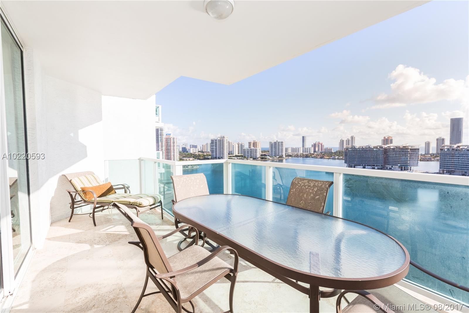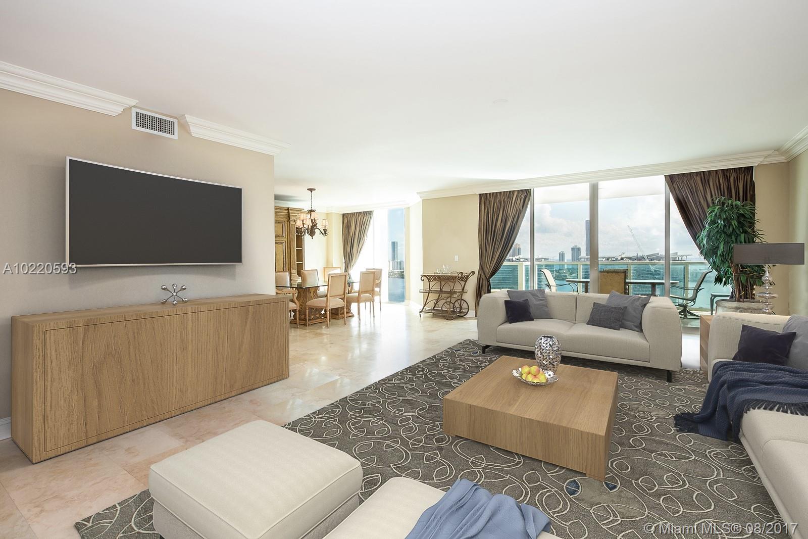 Gorgeous High floor flow thru luxury residence w/stunning direct views of bay, ocean & Sunny Isles skyline to the east & amazing unobstructed city views to the west from this 3 bedrooms, 3 baths, den/media room (easily converted into 4th bedroom), private elevator opening to formal foyer, crown moldings, marble floors, 2 balconies, Fully Upgraded gourmet Kitchen w/ granite counters, Stainless Steel ,subzero refrigerator & Wood Cabinets. Laundry room/Maids quarter. Great condition, used as a vacation home.