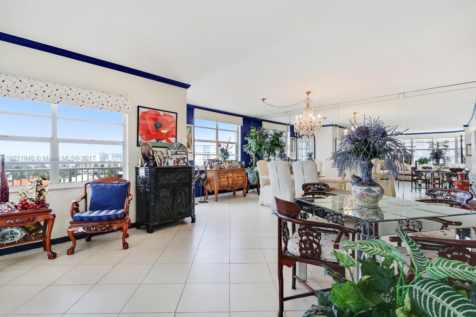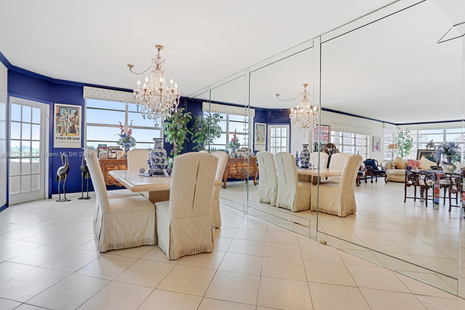 CORNER UNIT. Large 3 bedroom 2 1/2 bath corner unit on the southeast corner overlooking the intra-coastal and city views. Remodeled kitchen, lots of storage space. Professionally decorated. The building has awesome amenities including a private beach, 2 restaurants, tennis courts, basketball courts, 2 pools, 2 exercise rooms, beauty salon, 24/7 security, mini mart, dry cleaner and even a synagogue on premises. The monthly maintenance includes A/C, cable and much much more.