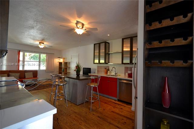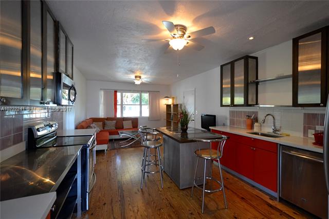 This spacious top floor corner unit facing the waterway features a wonderful floor plan with plenty of natural light. Currently set up as a 2BD/2BA plus den, residence features open kitchen with SS appliances, dade county pine wood flooring thru out, Hurricane shutters, huge walk in closets, individual washer/dryer, and nice tropical views.Walk downstairs and enjoy the well maintained grounds with waterfront pool and patio area. Building features gated entrance, BBQ area, lush landscaping and bike storage