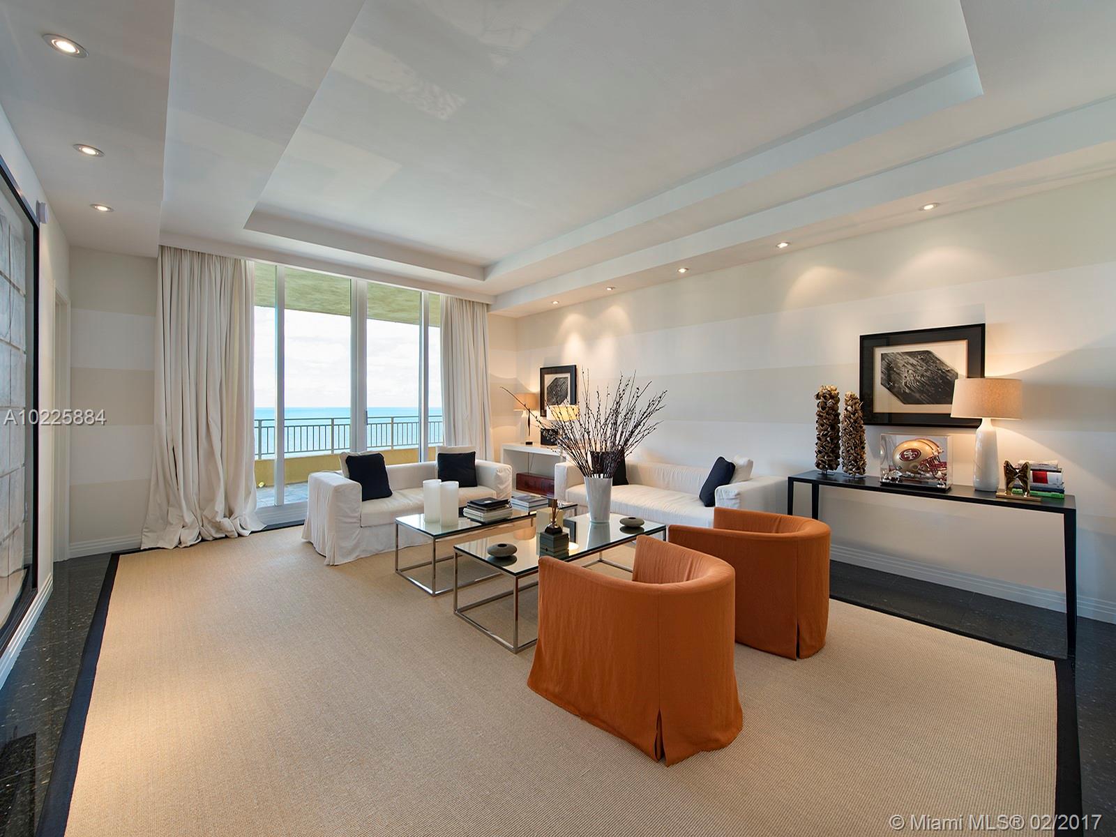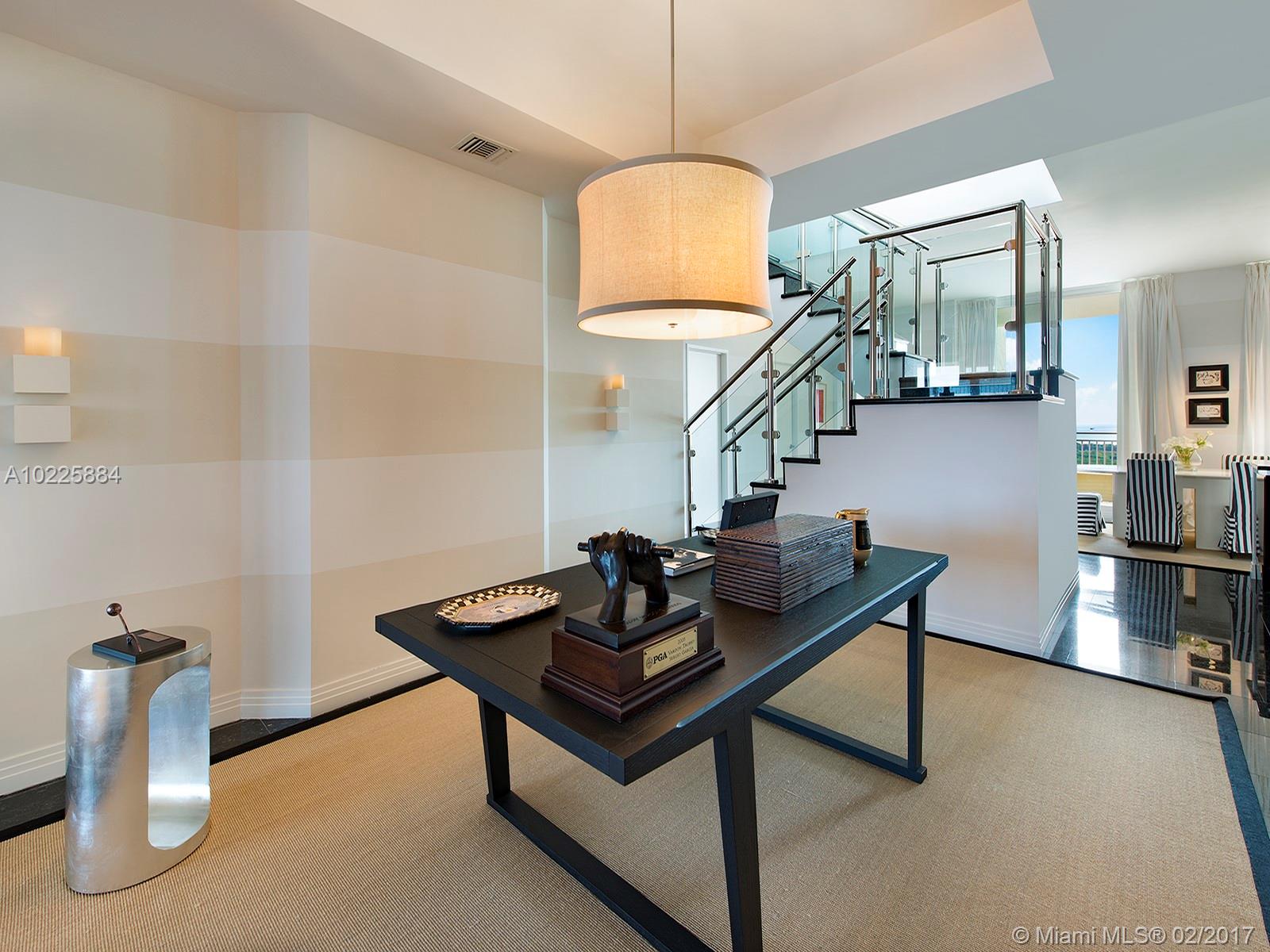 This Ocean Tower One Penthouse is truly a gem in the sky. Its unobstructed views of both the Atlantic Ocean, Biscayne Bay, and Downtown Miami are truly unique. Ocean Club is resort living at its finest, and has all the amenities one would expect from a world class community, featuring easy access to its beach, tennis, clubhouse, pools, dining, spas and much more. Ride the elevator straight into your own foyer and enjoy the enormous media room and rooftop terrace this unit has to offer.