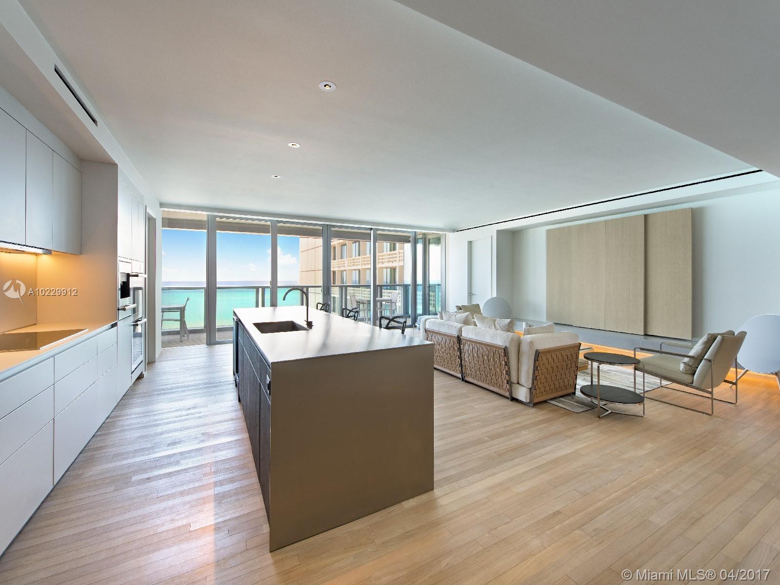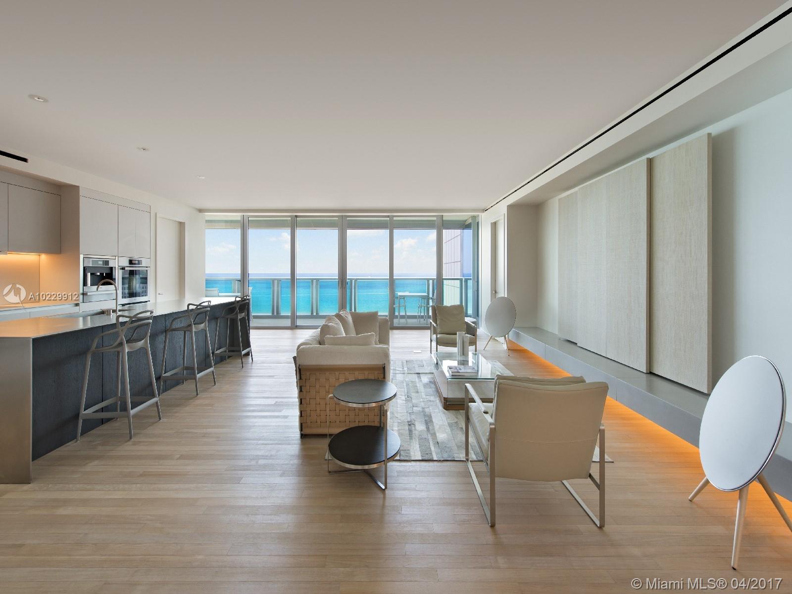 From the first moment you walk into the living room an expansive Atlantic Ocean greets you as far as your eyes can see. With impeccable attention to detail, this 3 bedroom, 3.5 bath residence boasts 8.5 floor-to-ceiling windows that lead to expansive terraces directly facing the Atlantic Ocean. Featuring a private entry foyer, Brazilian teak floors throughout, Bulthaup open kitchens, translucent Italian white onyx and cast concrete in the bathrooms, all custom designed by John Pawson.
