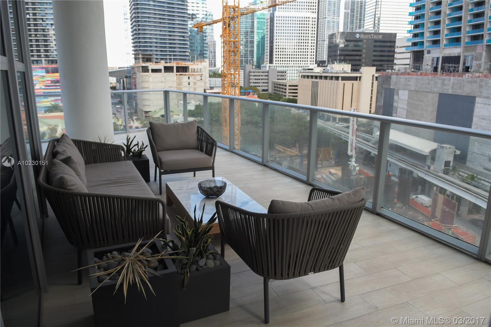 Create your paradise on 1,500 sq ft patio & enjoy the view from double height windows.This extravagant high ceiling condo features Italian cabinetry,quarts counter tops & rainfall showers,complemented by additional upgrades such as Italian porcelain tile floors,electric shades.Like a luxury house in the heart of Brickell.Same floor parking-no elevator wait.