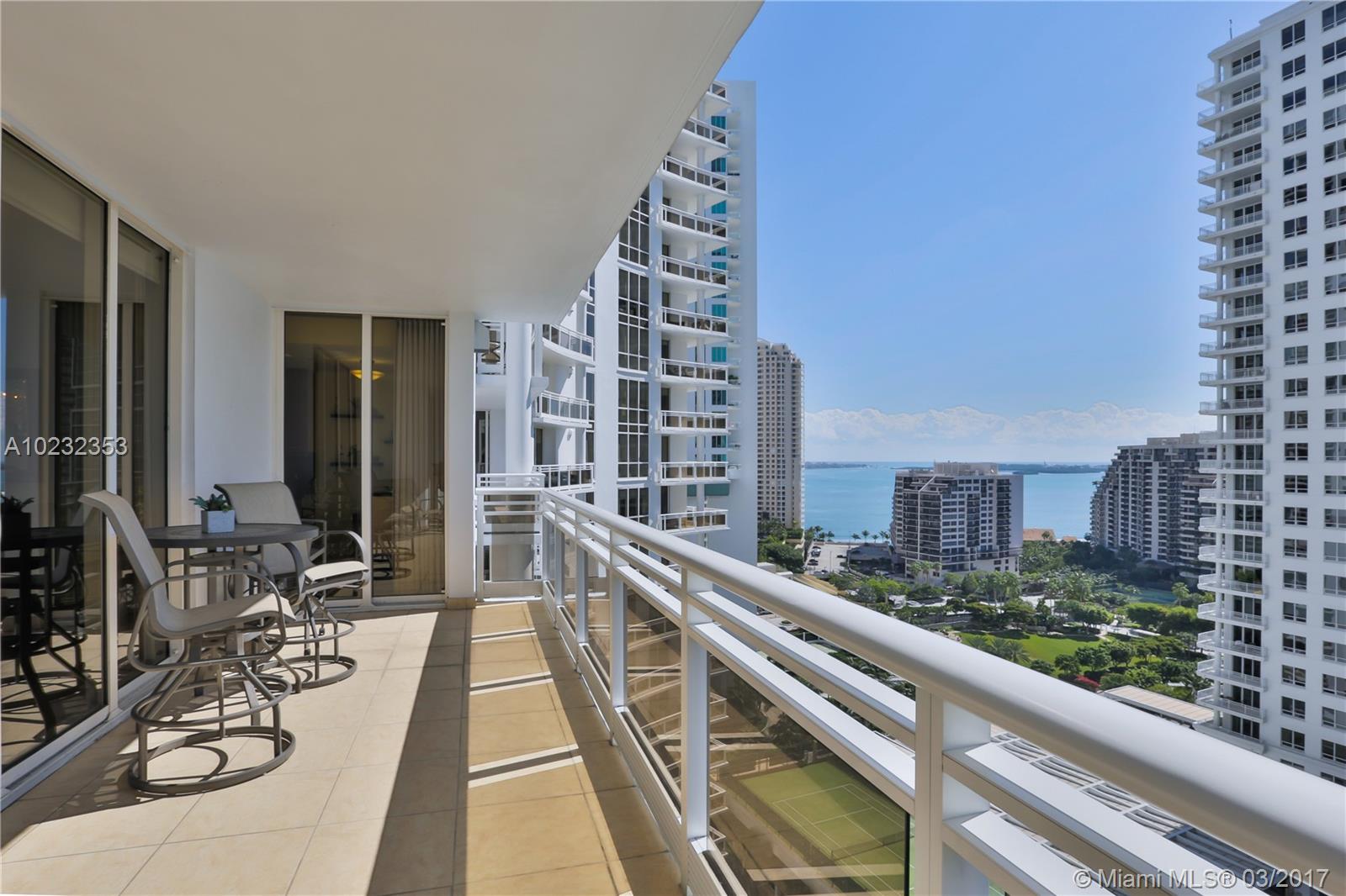 Beautifully decorated residence on exclusive Brickell Key. Wraparound terrace with stunning views of downtown Miami Skyline the River and Bay. Carbonell one of the best managed buildings in the area it offers, state of the art fitness center, tennis, racquetball and squash courts, spa & sauna, pool, concierge, 24 hour security, valet service and conference center. Brickell Key offers various shops and restaurants