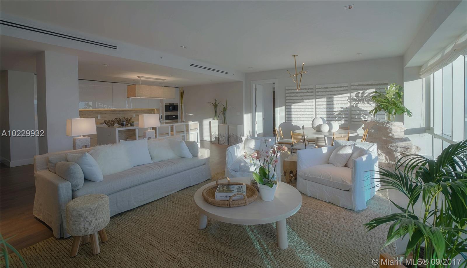 Fully furnished Penthouse residence designed by Samuel Amoia. This 3 bedroom penthouse offers ample living space coupled with breathtaking ocean views, and mesmerizing sunrises. Enjoy top of the line finishes, oak flooring, a sleek open kitchen, and all of the services and amenities of a beach front world class hotel.