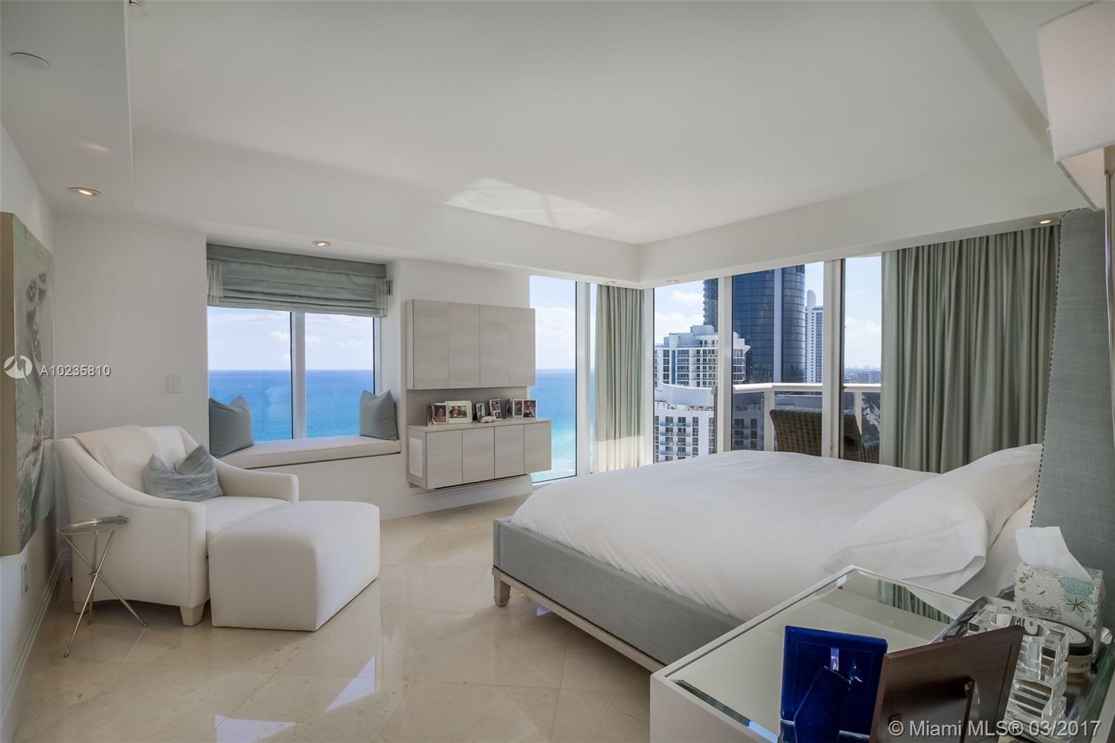 Prestige and luxury describe this impeccable residence. Featuring 3 beds/3.5 baths - engineered wood floors. Master bdrm w/private balcony & direct ocean views. Walk-in closets. Master bath. Italian eat-in kitchen w/Miele appliances. Spacious LR w/floor to ceiling 180 degree windows, unobstructed views of ocean/bay/city. Private elevator. Pool, gym, spa, serviced beach lounges & umbrellas, concierge, tennis court, party room and handy food store. Mint condition. Beach cabana for sale separately or deal.
