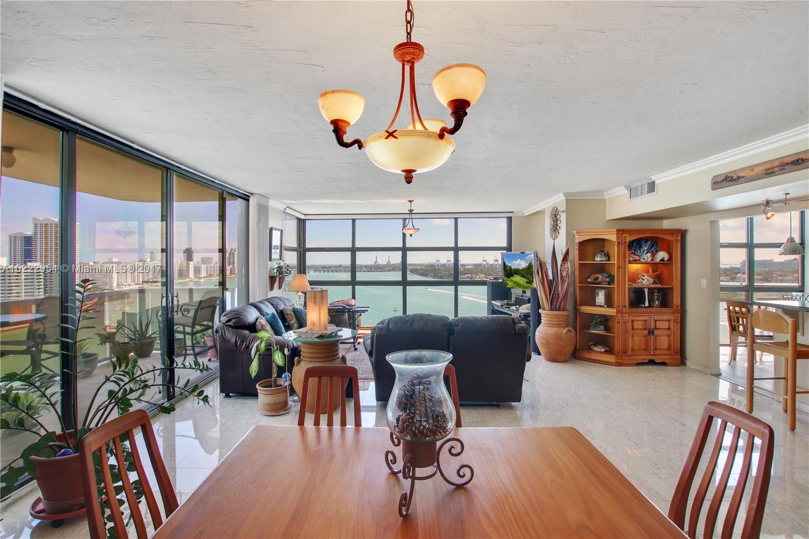 Best views of Bay, Star Island, and South Beach. The spacious 2 bedroom has an open floor plan and updated kitchen. Large rooms and huge closets and bonus storage room on the same floor. End unit in well run building with great amenties: Valet, gym, pool, docks, 3 hot tubs, Great location, walk to Standard, New Sunset Harbor shops and restaurants and Lincoln Rd. Added benefit of new building lobby paid by​​‌​​​​‌​‌​​​​‌‌​‌​​​​‌‌​​‌‌​​‌‌ Seller.