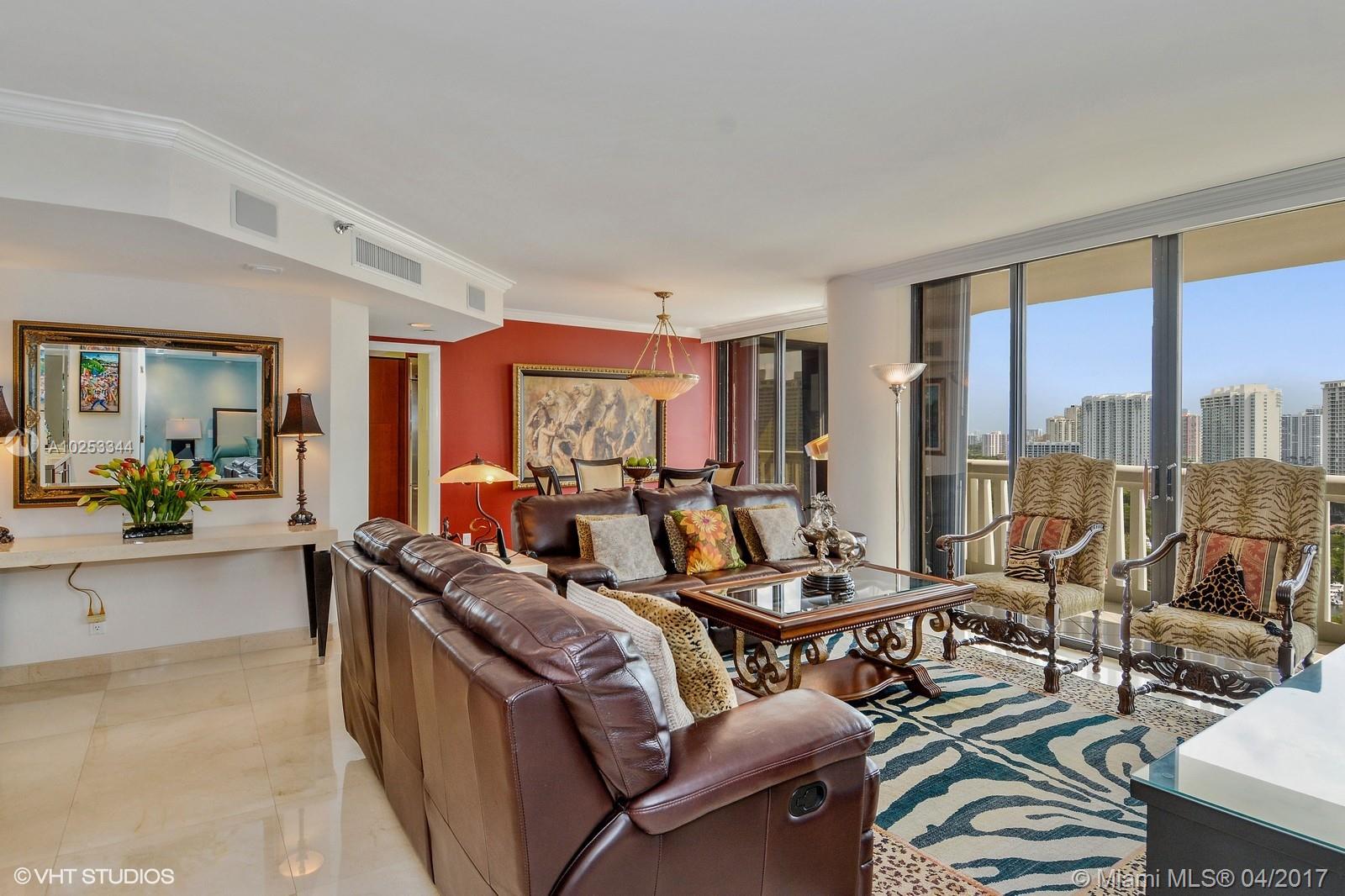 Panoramic views from virtually every room in this totally renovated 21st floor unit in the world renowned community of Williams Island. No expense spared: Italian marble flooring throughout, Mia Cucina kitchen and baths, custom lighting, huge master suite with designer closets, and more. Enjoy views to the ocean, bay and downtown both day and night! Indulge in Five Star amenities: new 27,000 sq.ft. spa and fitness, restaurants, marina, tennis, pools and much more!