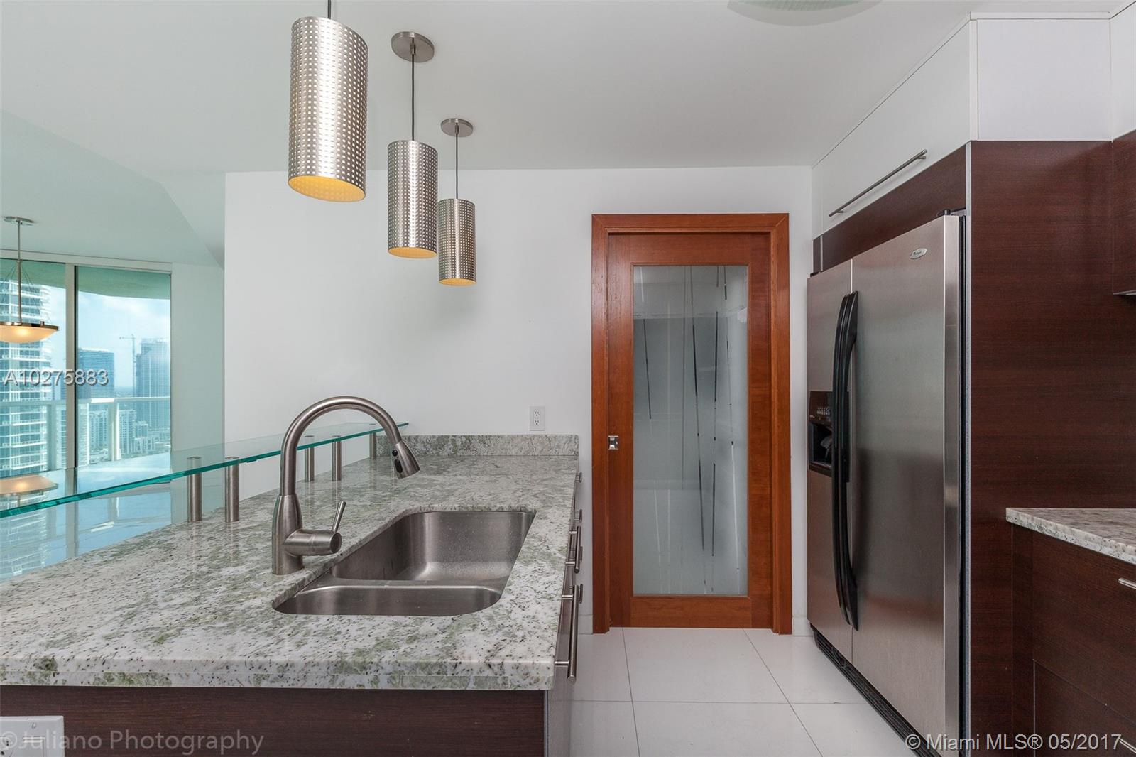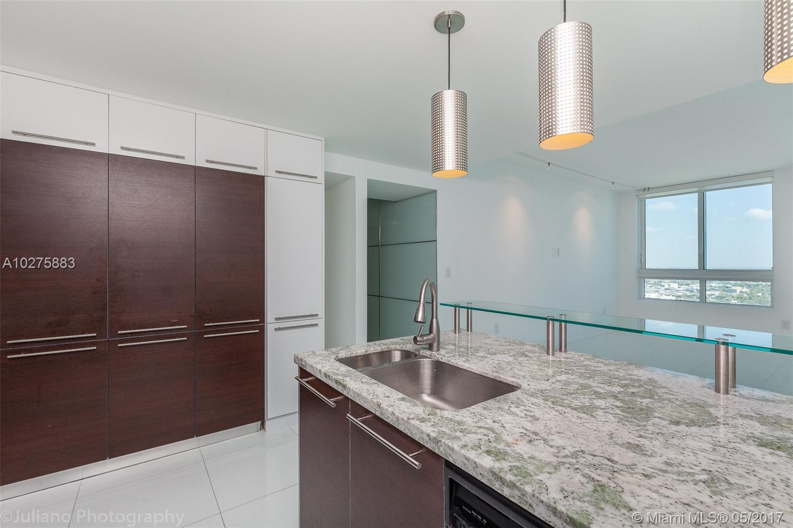 This spectacular condo has unobstructed views from every room. 3/3 turn-key ready with european kitchen and granite counter tops. SS appliances, washer/dryer, walk in closets and glass doors make this as unique as the sights. Sonos surround sound wireless stereo system makes the home into an unbelievable theatre experience. One of the few units with 2 parking spots and storage unit. Quantum On The Bay features pools, movie theatre, lounge, extra storage, fitness center, valet and 24 hour security. Park with basketball courts is across the street.Walking distance to the AA Arena, stores and restaurants. Minutes from Wynwood, Design District and Brickell.