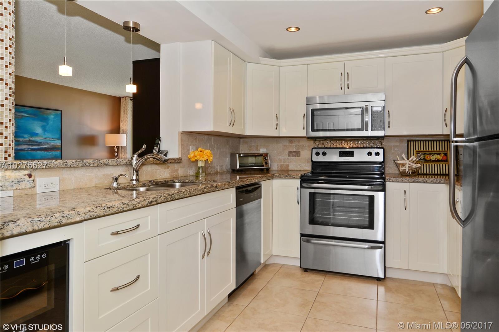Florida living, magnificent direct view on intracoastal from every room; constant boat parade. Stylish & pristine 2/2 remodeled condo, featuring a newer custom opened kitchen with granite, new cabinets, ss appliances, recessed lighting, built in wine cooler, eating counter/bar. Spacious master suite with large walk in closet. Bathrooms upgraded as well. Beautifully tiled throughout. Bright unit with floor to ceiling windows. Sold partially furnished. Elegant, 24hrs secured bldg including Gym, Tennis, Billiard, Pool, Clubhouse and more. Great location, minutes to Beaches, Shopping, Casino, Restaurants. All age bldg with a 2 year rental restriction. Easy to show. Pictures is truthful to the immaculate condition of this residence. Parking for this unit is totally covered, rarely available.