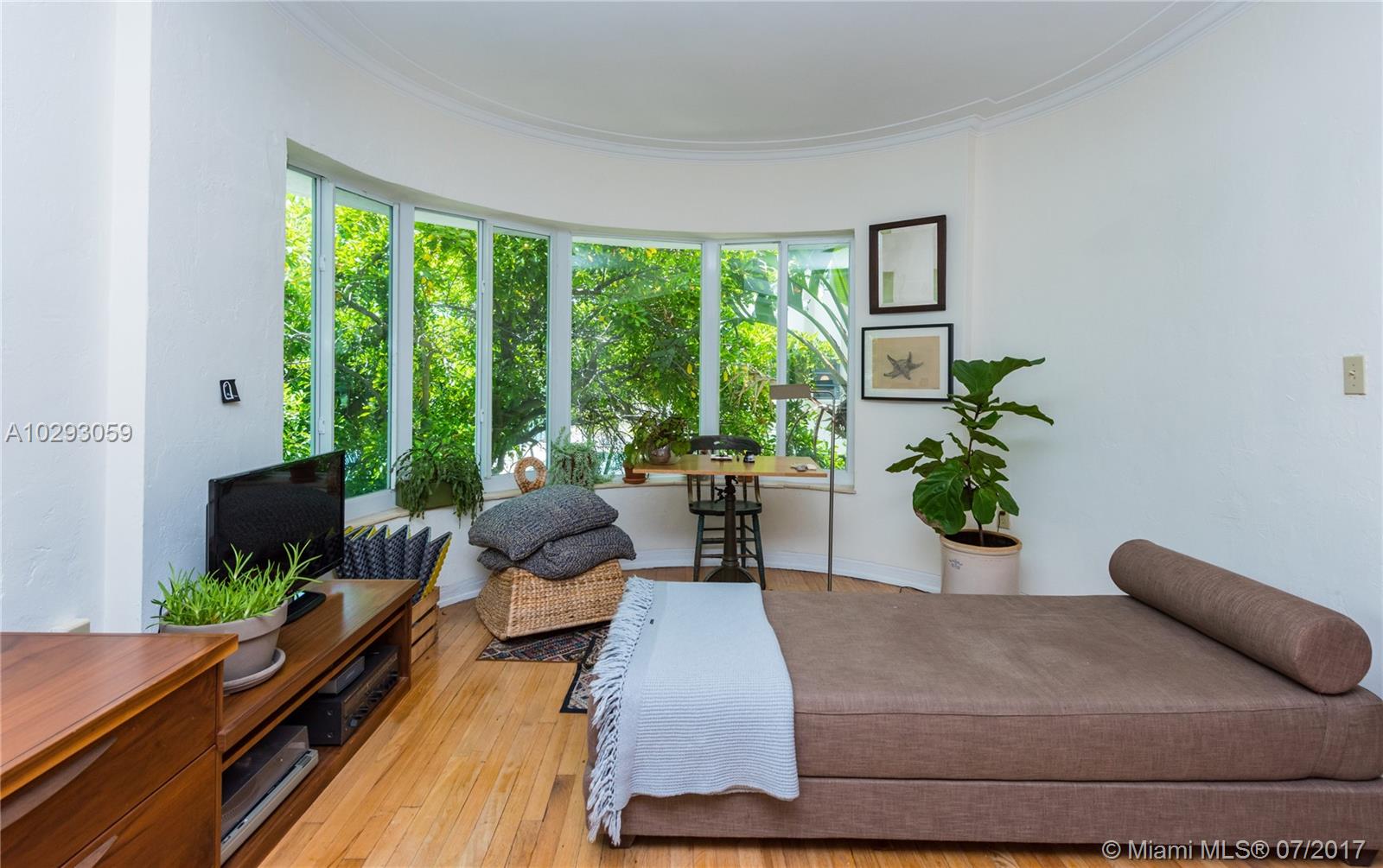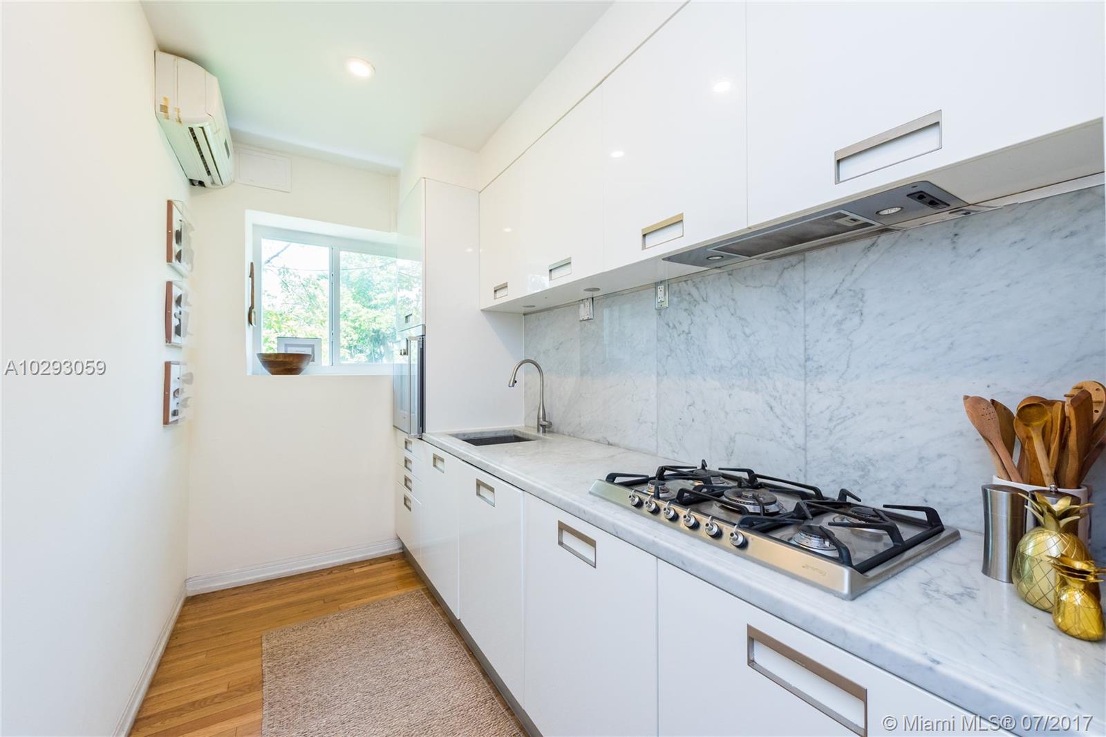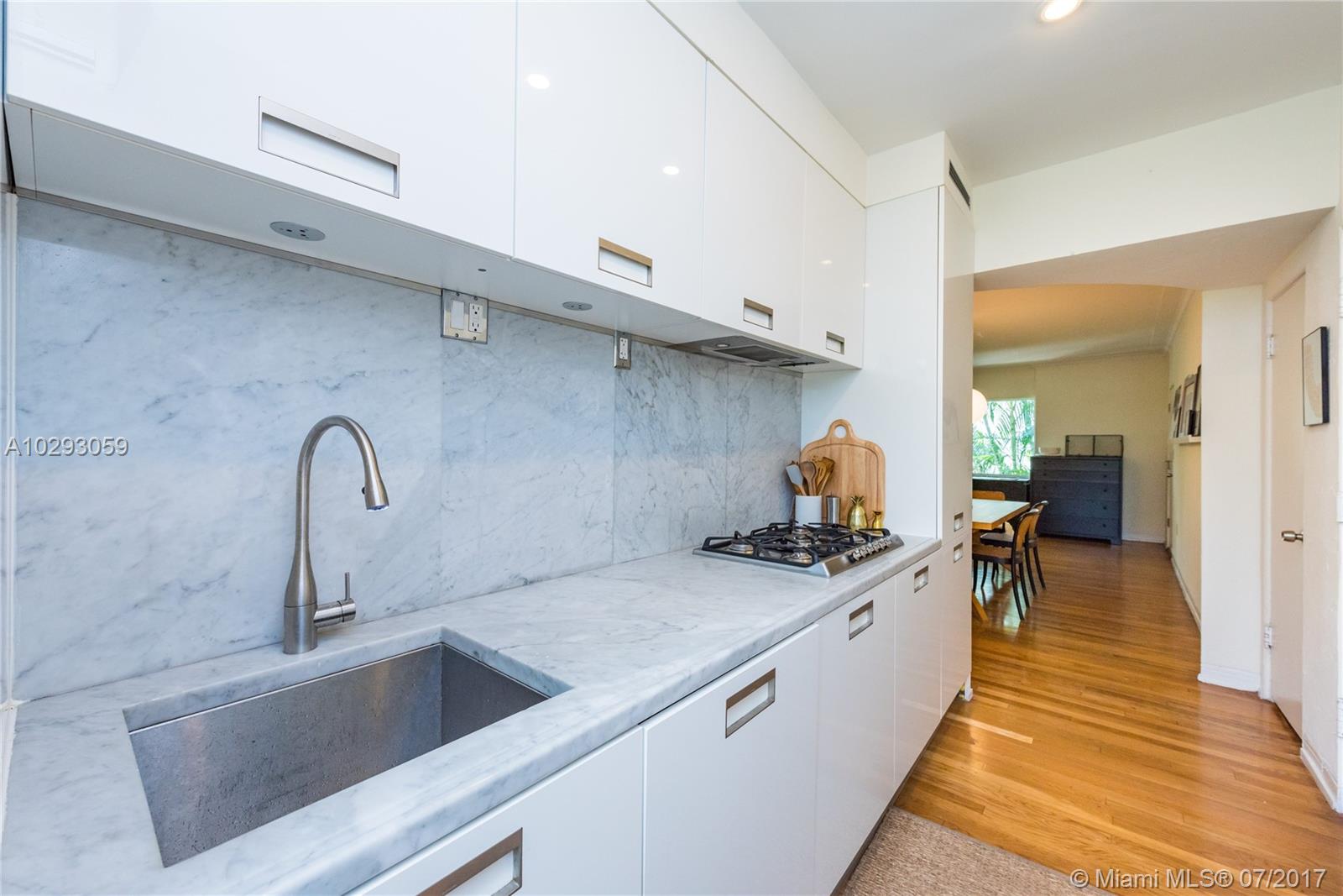 You will love living in this charming Art Deco building designed by renowned architect Martin Luther Hampton. This second story corner unit boasts the best location of this boutique building, with partial water views while offering full privacy and shade under a majestic tree canopy. The unit features hardwood floors, sunlit bay impact windows and a number of upgrades including an Arclinea Italian kitchen, Gaggenau oven, Smeg gas cooktop, fully vented hood, remodeled bathrooms and custom built-ins. Live walking distance from a number of neighborhood restaurant gems, cafes, shopping, nightlife…..and of course, the beach!