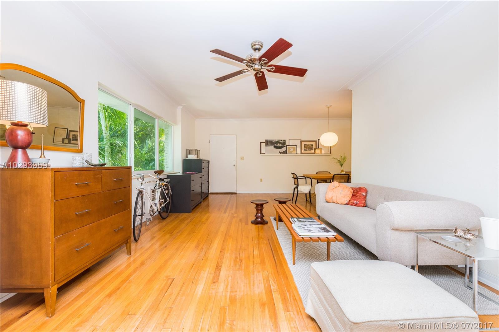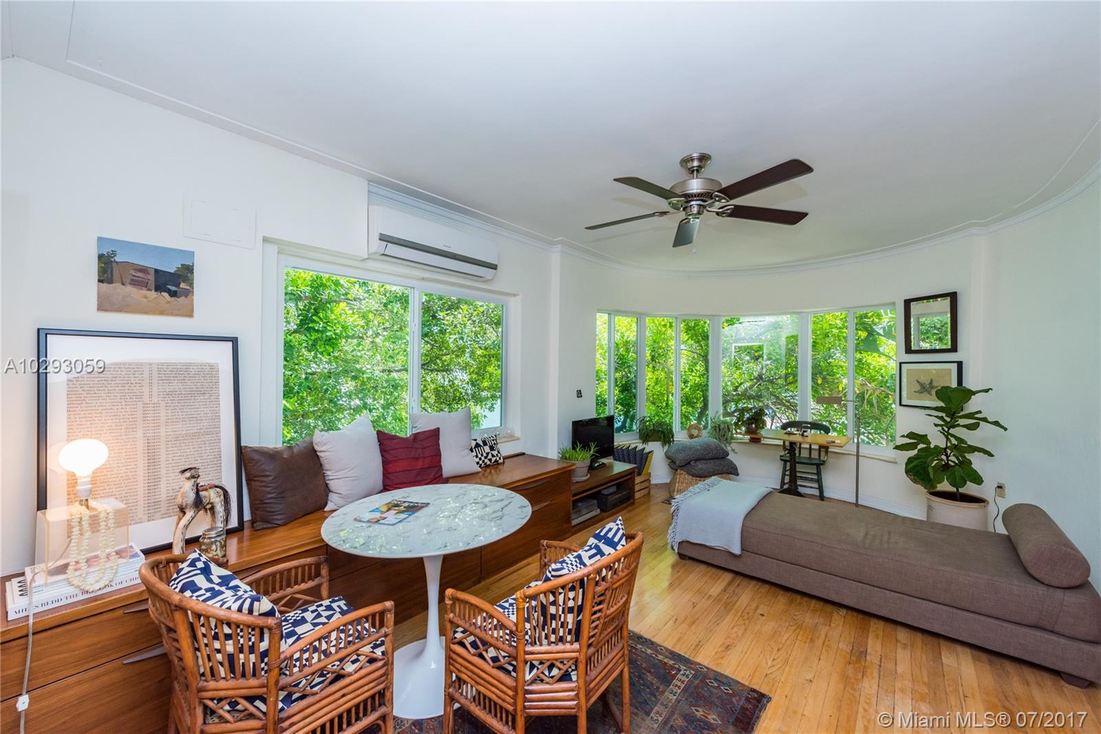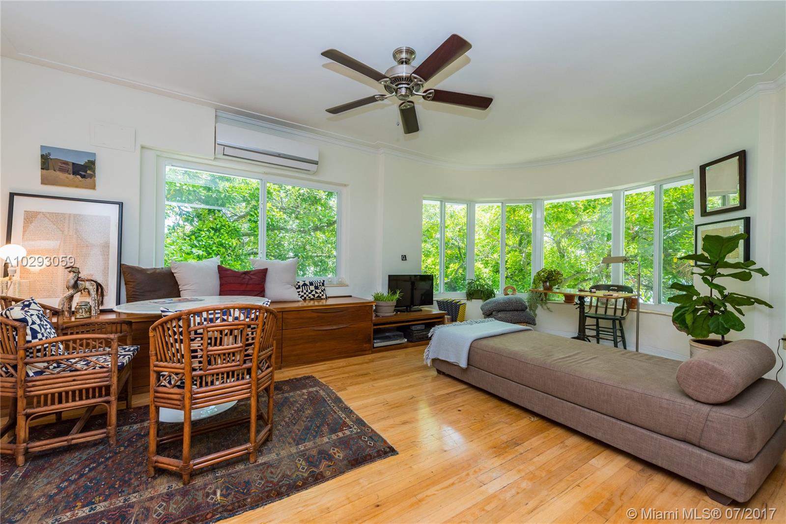 You will love living in this charming Art Deco building designed by renowned architect Martin Luther Hampton. This second story corner unit boasts the best location of this boutique building, with partial water views while offering full privacy and shade under a majestic tree canopy. The unit features hardwood floors, sunlit bay impact windows and a number of upgrades including an Arclinea Italian kitchen, Gaggenau oven, Smeg gas cooktop, fully vented hood, remodeled bathrooms and custom built-ins. Live walking distance from a number of neighborhood restaurant gems, cafes, shopping, nightlife…..and of course, the beach!