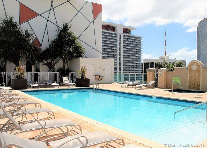 Live in the heart of Downtown, Miami. Rooftop/lap pool and roof top gym. Amenities include club room, sauna, 24 hour front desk and metro mover right in the building.