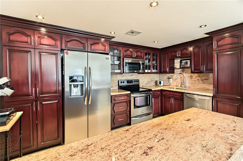 Beautifully renovated 2BD/2BA condo on Hollywood Beach. Corner unit on the 2nd Floor has a wrap around balcony with honest ocean view. Gorgeous open kitchen has cherry cabinets, granite counters and ss appliances. Light, bright and spacious with crown molding and tile floors throughout. Updated bathrooms and huge master bedroom with 2 walk-in closets. Hyde Park Towers is located on prestigious Ocean Drive, just steps to the ocean and walking distance to the Boardwalk, shops and restaurants.