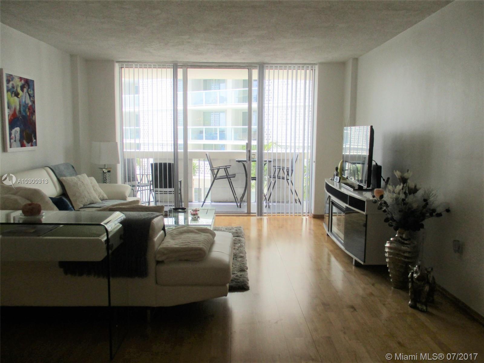 Nicely updated 1bedroom, 1 bath unit with wood floors, new kitchen appliances, updated bath & big walk-in closet in bedroom. Complex offers new amenities, Bay front pool, great gym, community rooms & on site convenience store. Good security and walking distance to South Beach. Unit comes with one deeded parking space in covered garage. Private balcony with view of Bay. Pet friendly!