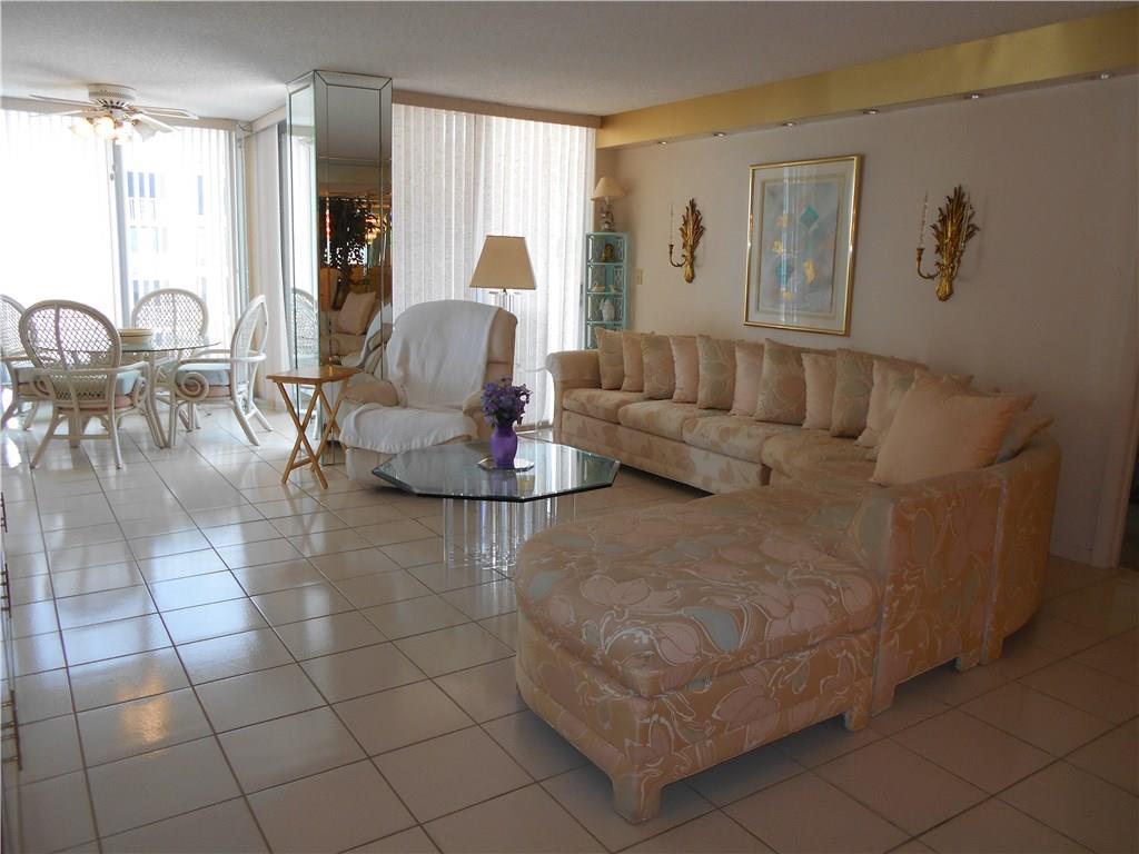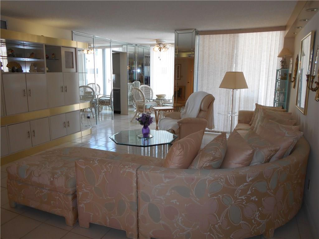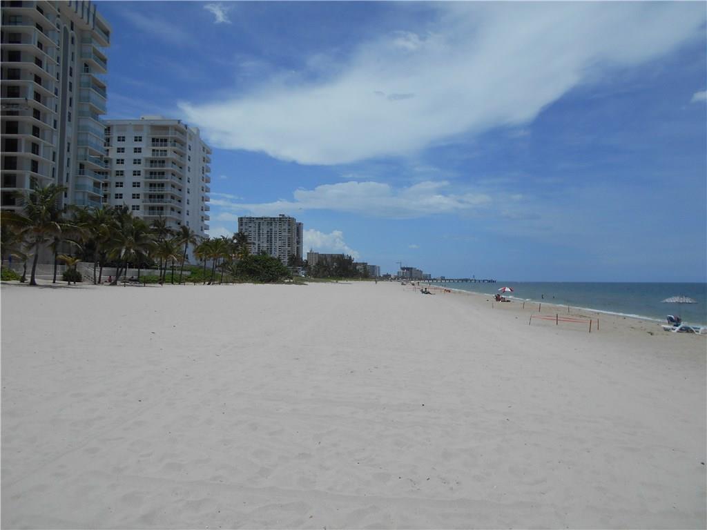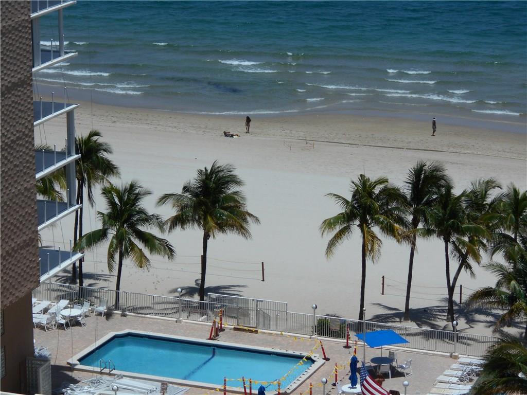 Over sized 2/2 with balcony in building right on the sand. Light and bright, great ocean, city and Intracoastal views. Impact glass windows, accordion shutters on balcony. Like-new stainless appliances. Master bedroom has 2 walk-in closets plus a large linen closet. Guest bedroom is large enough to fit 2 double beds plus furniture. Formal dining room plus breakfast area. Utility room with washer/dryer in unit. 24/7 security guard, fitness center, pool, spa, BBQ, party room. Furniture stays.