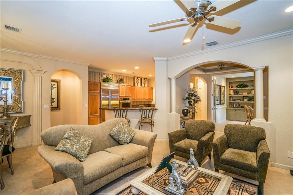 Stunning 1st floor coach home, feels like a single family home! Beautiful kitchen with granite countertops, Sub Zero Refrigerator, stainless steel GE Profile appliances and tile flooring. 3rd bedroom is set up as an office with built-in book shelves, no closet. Shows like a model home, in perfect move-in condition. Furniture is negotiable. Gated community with all the conveniences of a condo, but the feel of a single family home. Roof, exterior & insurance included. Walk to Weston Town Center.